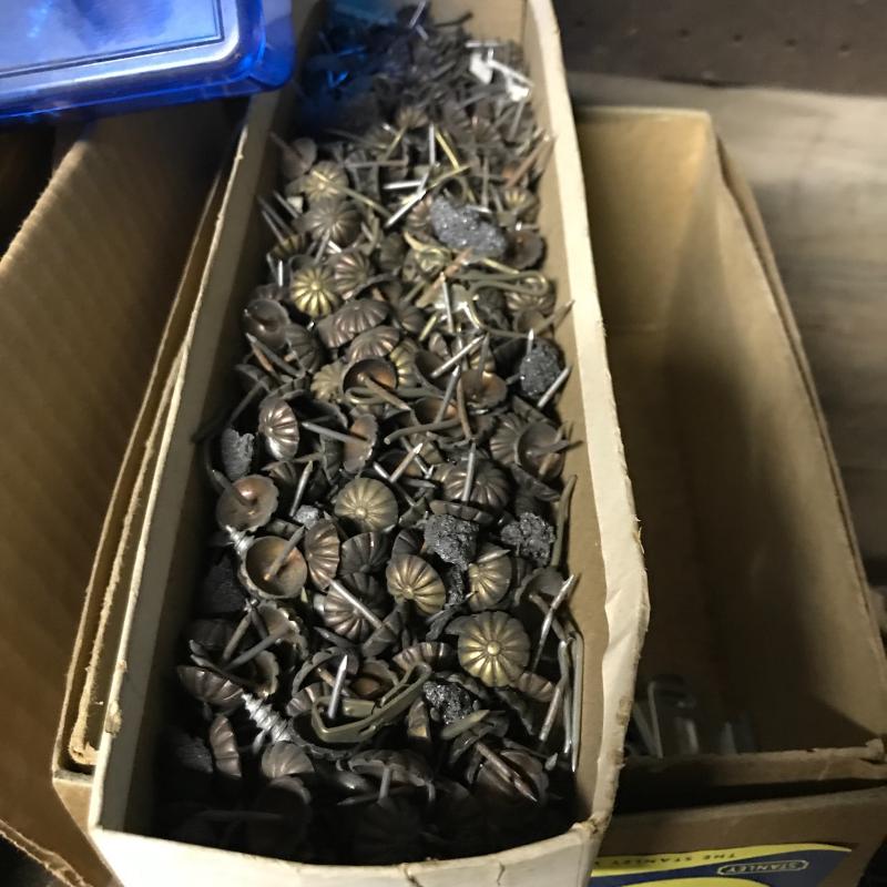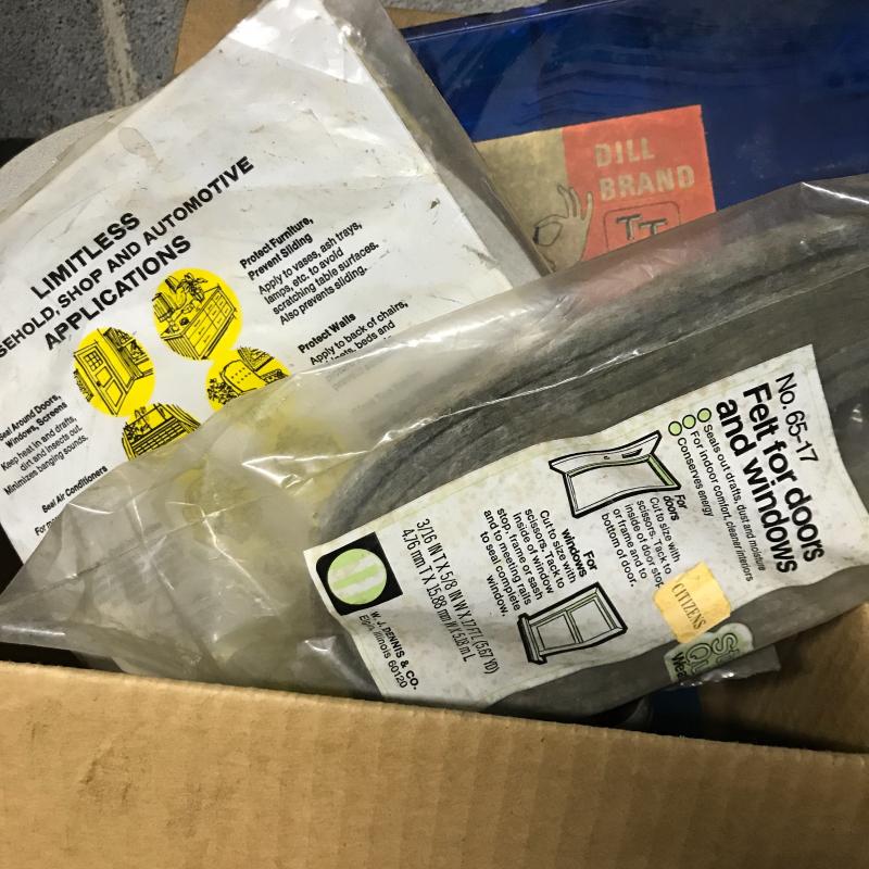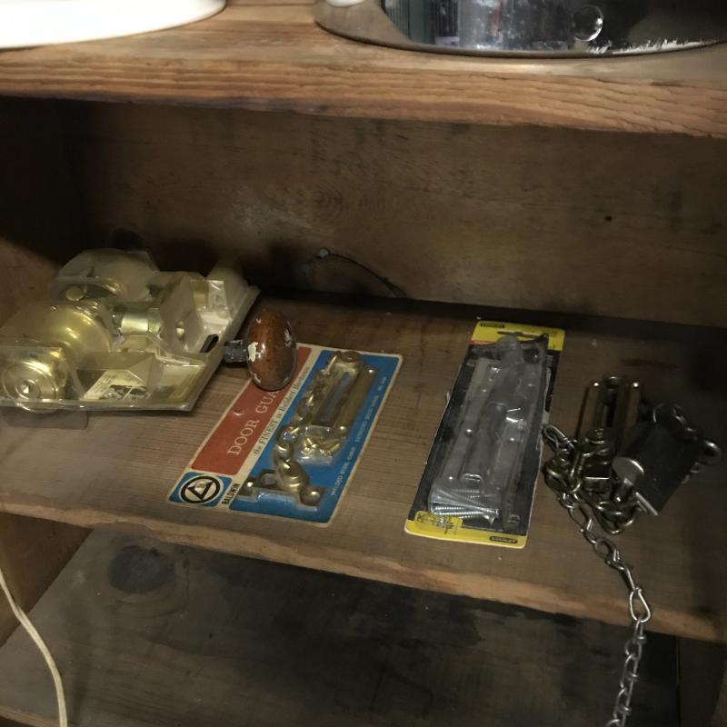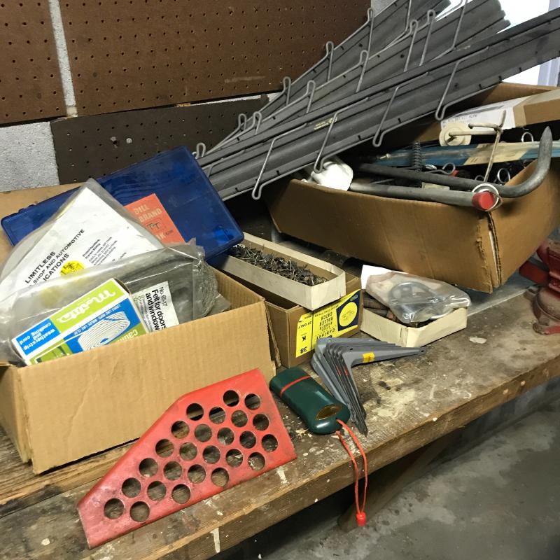 Miscellaneous tools. Weather stripping, wall racks, box of furniture tacks, door locks, bulbs, fan cover, Vise (you can leave vise if you don’t want to detach it). and more. See photos. No shipping