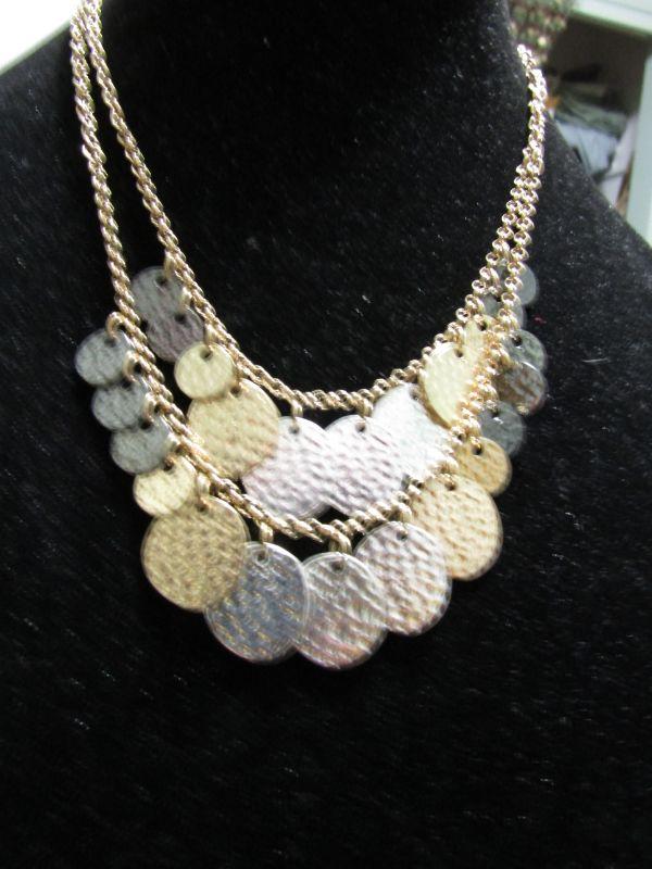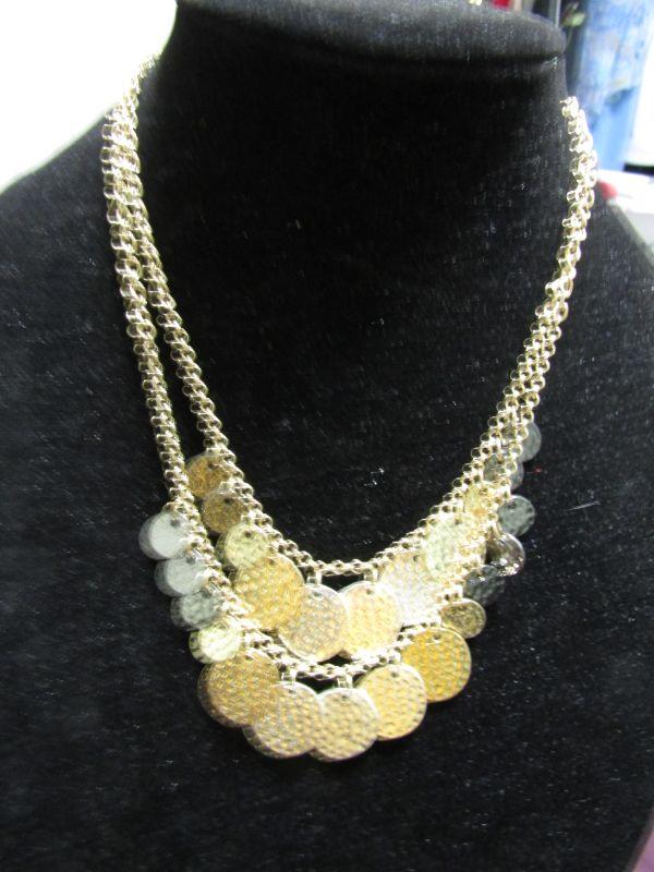 MULTI-COLOR AND SIZE COIN LIKE DOUBLE STRAND NECKLACE