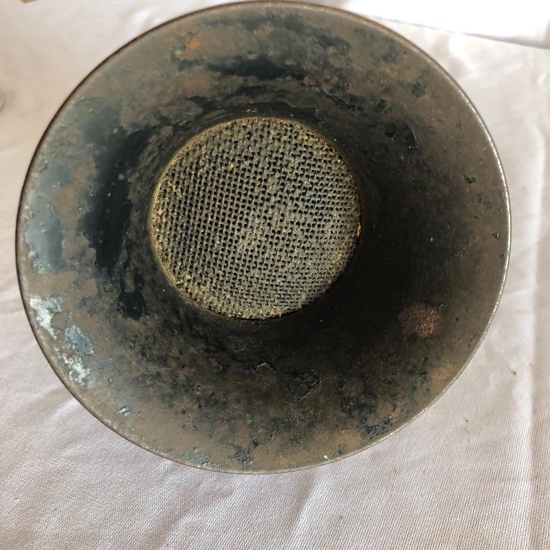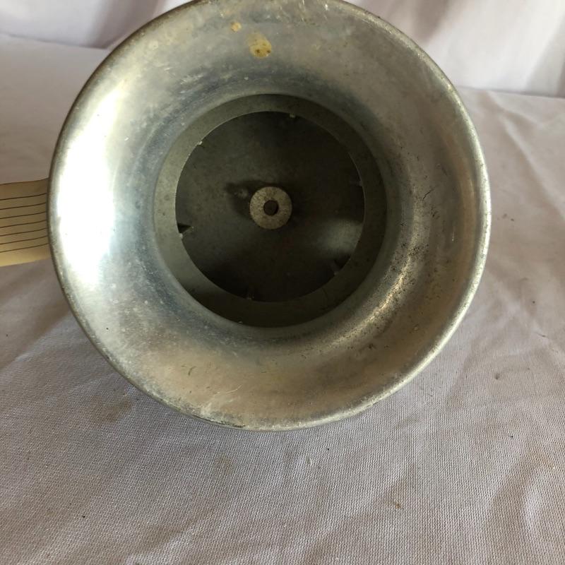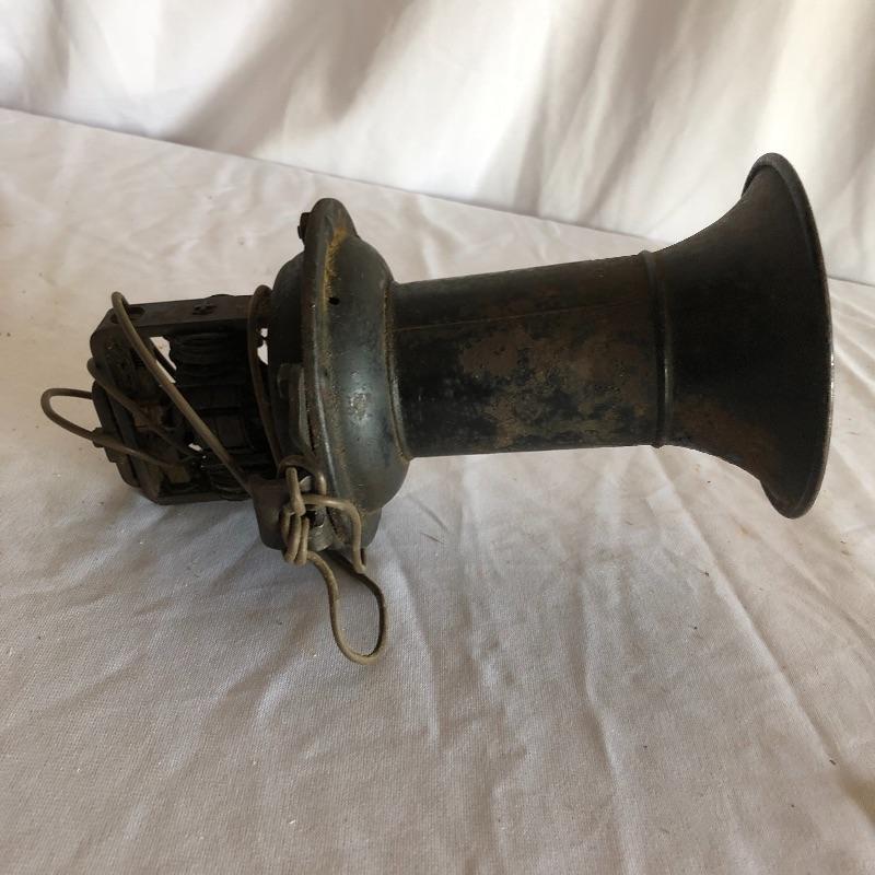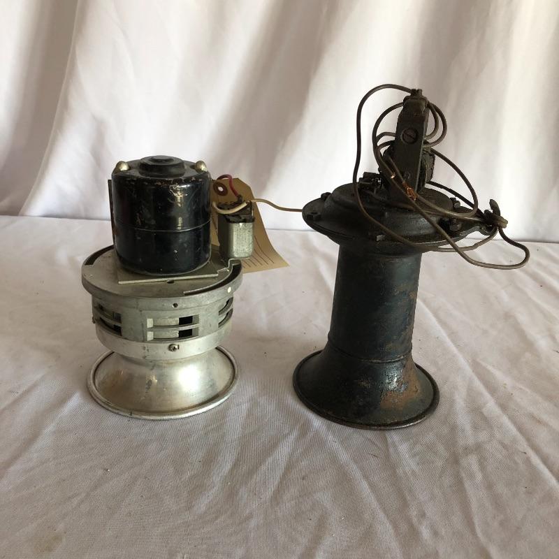 A great way to finish off your classic car with a unique horn. Lot includes one black metal horn marked Sparton and an aluminum and metal horn. Black horn measures 5.5”D x 10.5” tall. Horns were not tested.