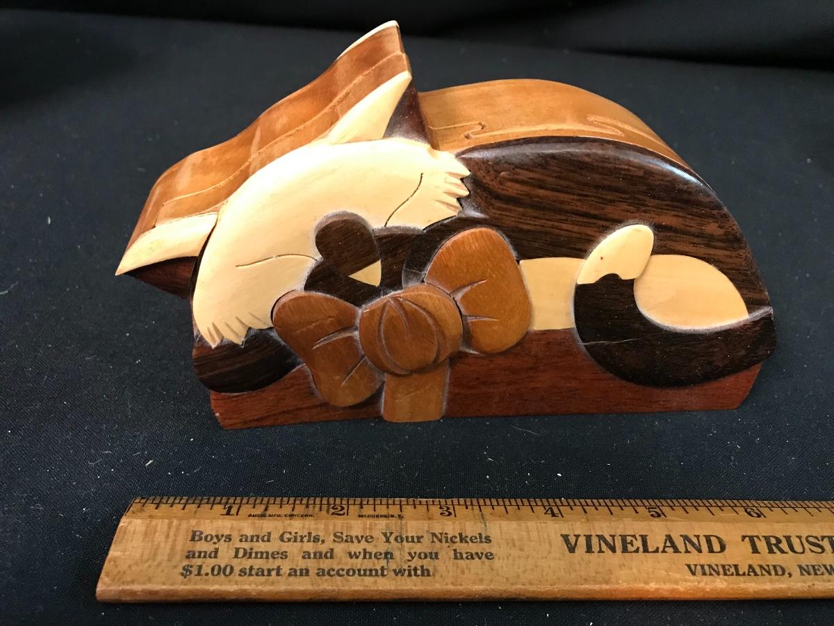 Wooden Trinket Puzzle Box & More. Please see all pictures as they are the best representation of the items. The pictures show condition, measurements if taken, and what is included in the lot. Due to the large amount that we photograph and the time frame, we are not always able to take measurements. All items unless noted, are pre-owned and have been used. If you purchased furniture, you must bring help. We do not allow one person to carry large furniture out on their own. Bring help, tools and a truck for the safety of our client’s homes, and your personal safety. Company policy. Thank you.