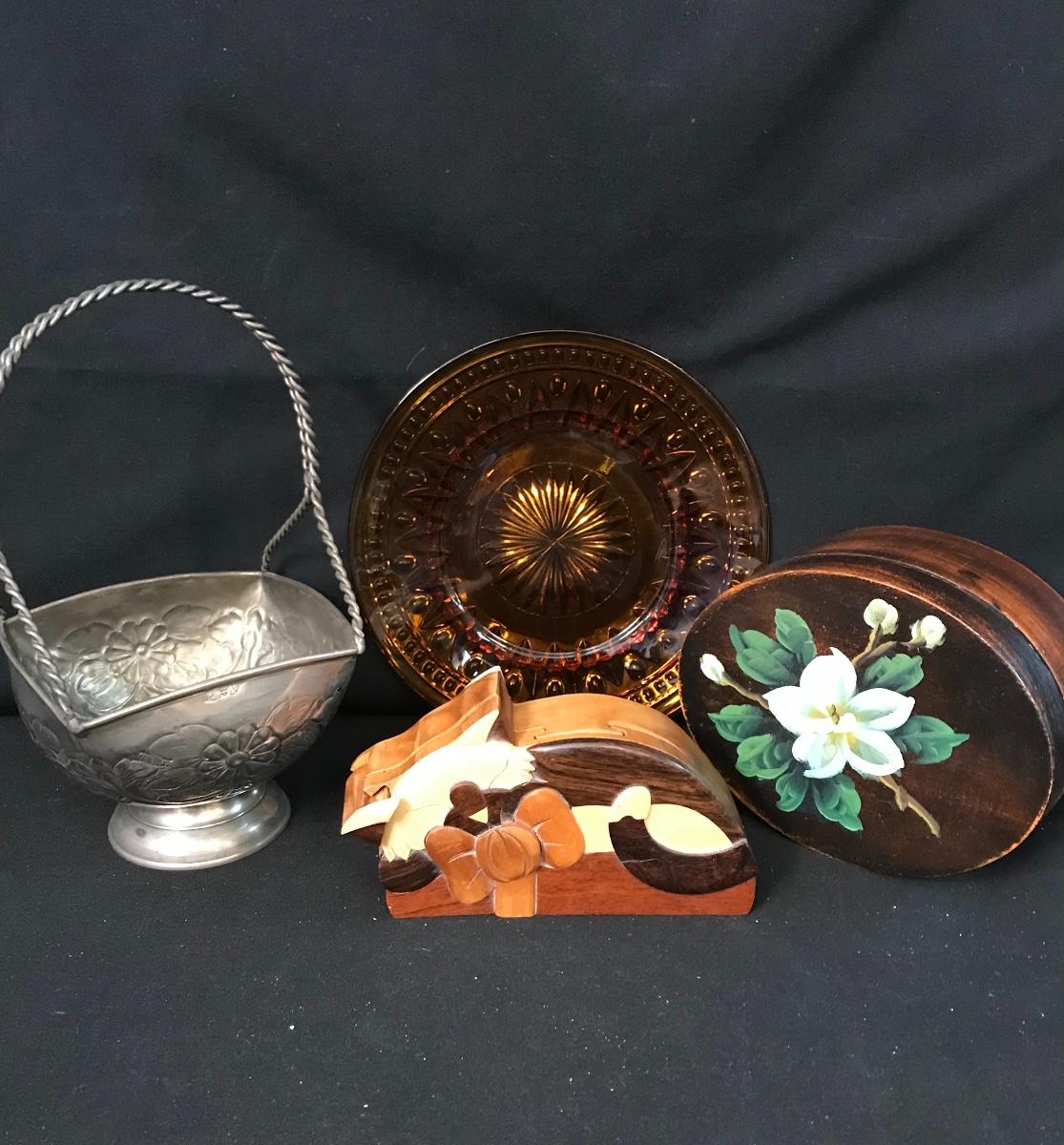 Lot 282: Wooden Trinket Puzzle Box & More