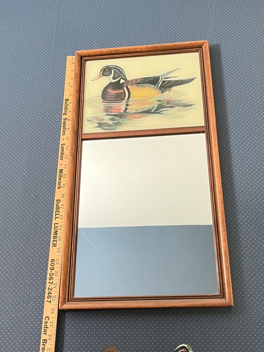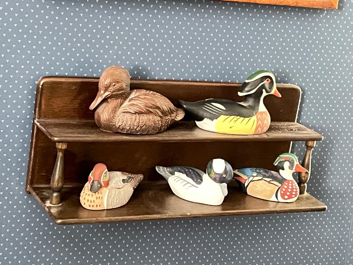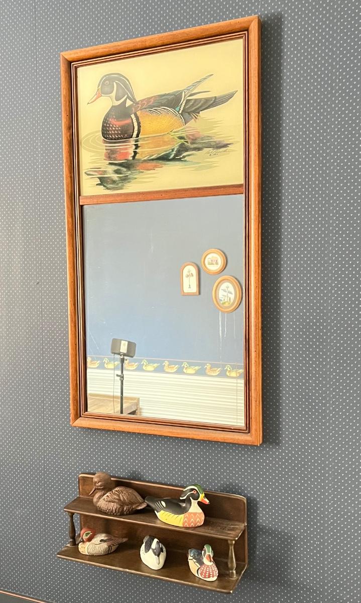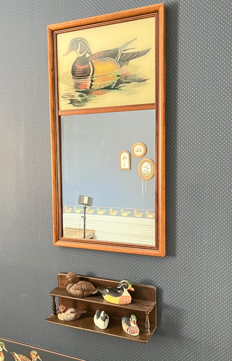 LOT 283X: Duck Themed Decor - Mirror and Shelf with Figurines - Red Mill, Avon and More