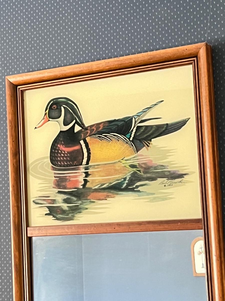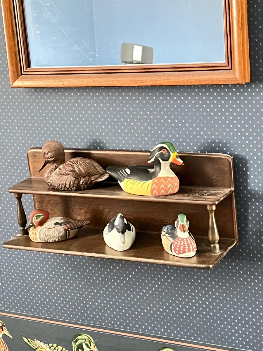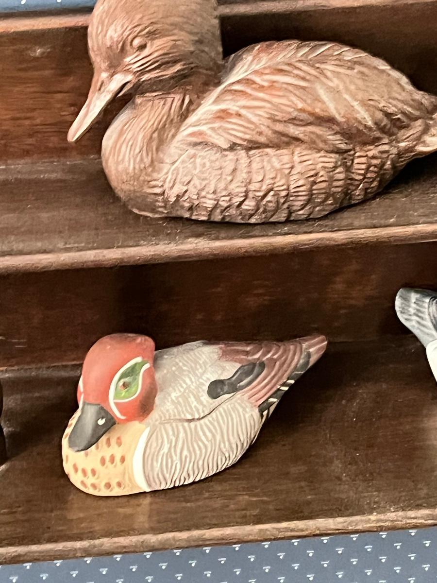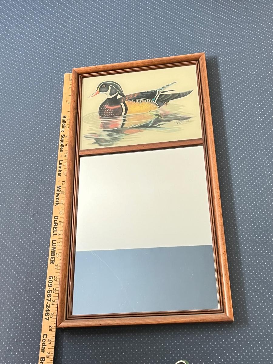 LOT 283X: Duck Themed Decor - Mirror and Shelf with Figurines - Red Mill, Avon and More