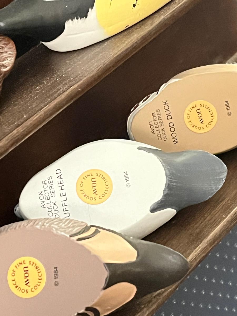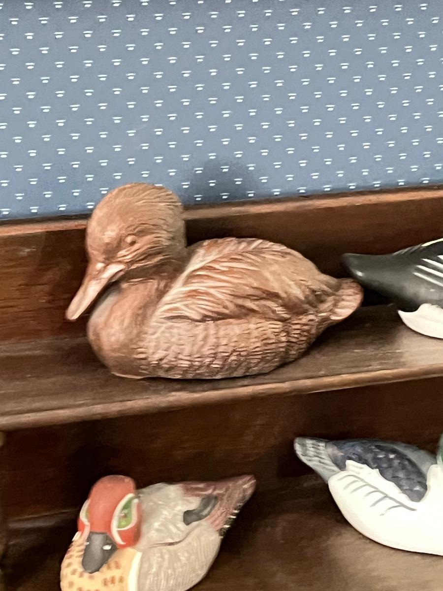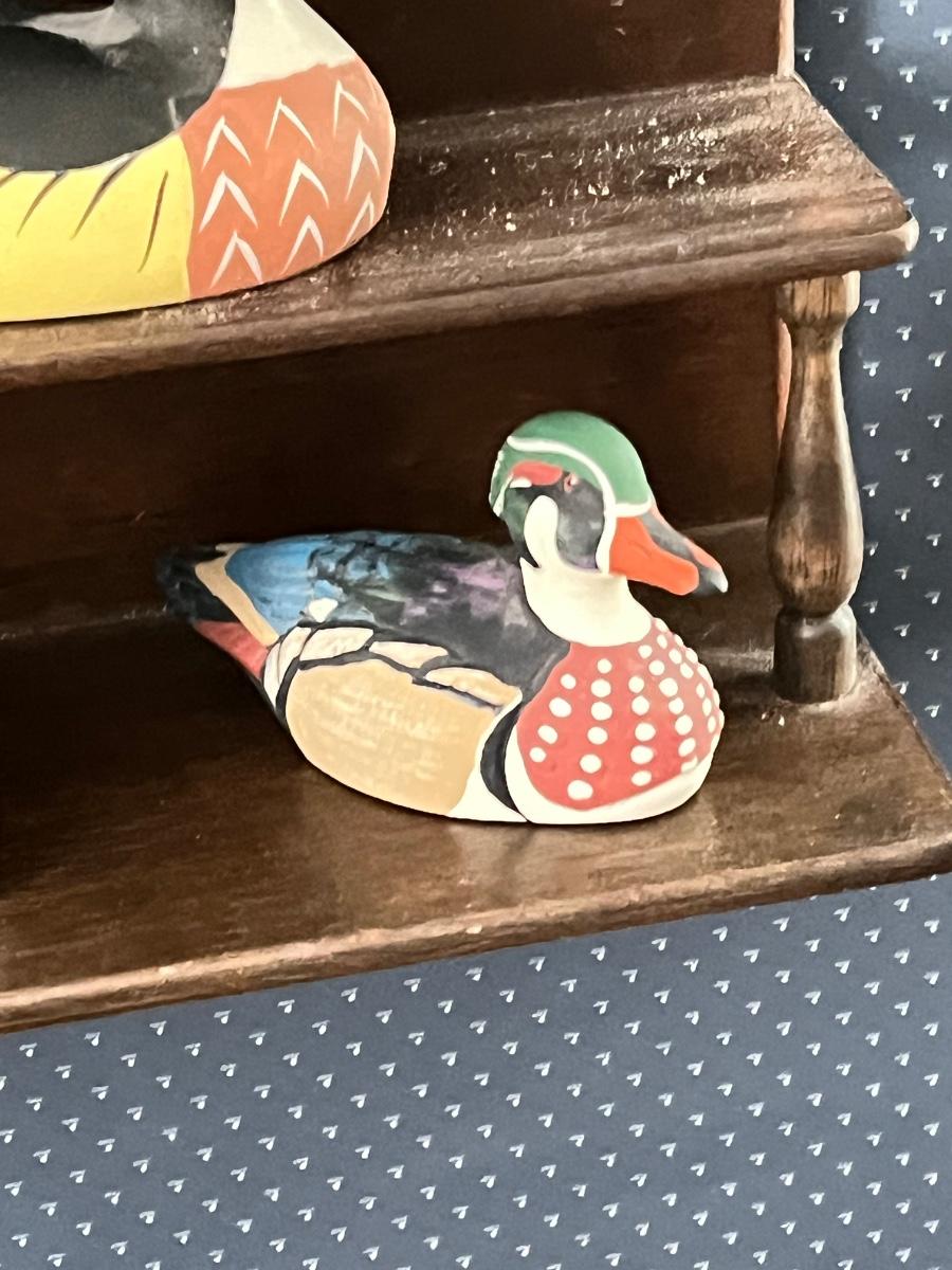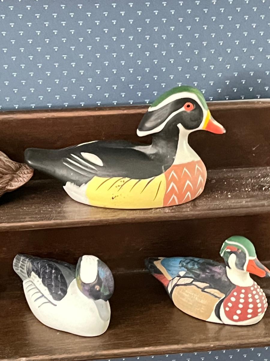 LOT 283X: Duck Themed Decor - Mirror and Shelf with Figurines - Red Mill, Avon and More