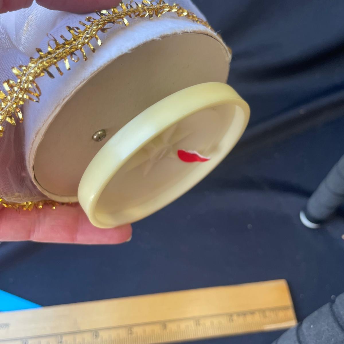 Tree topper is in good shape. Music box works, but the head doesn't stay on.