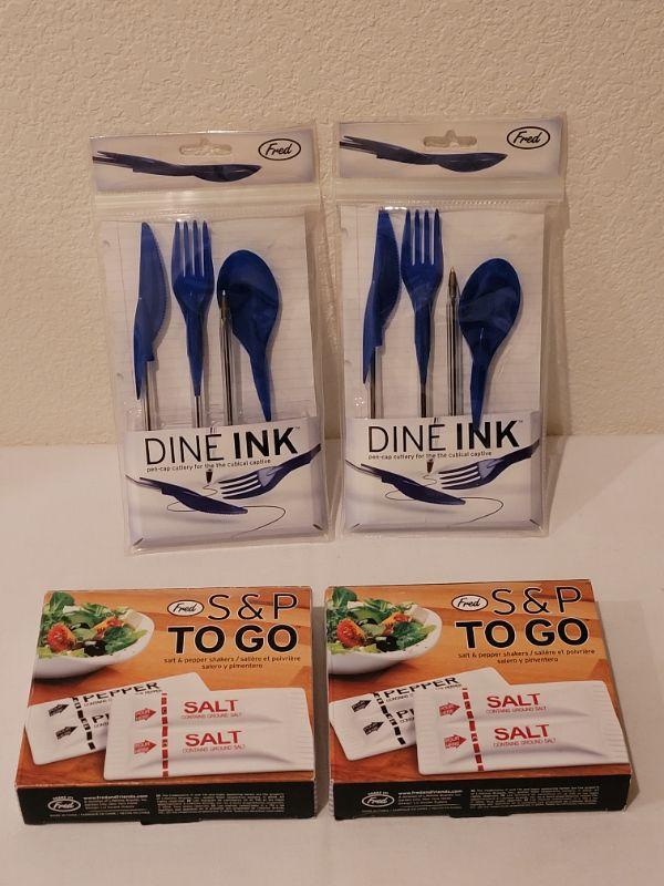Lot 283: NEW Ink Pen With Utensil Lids and Salt and Pepper Shakers