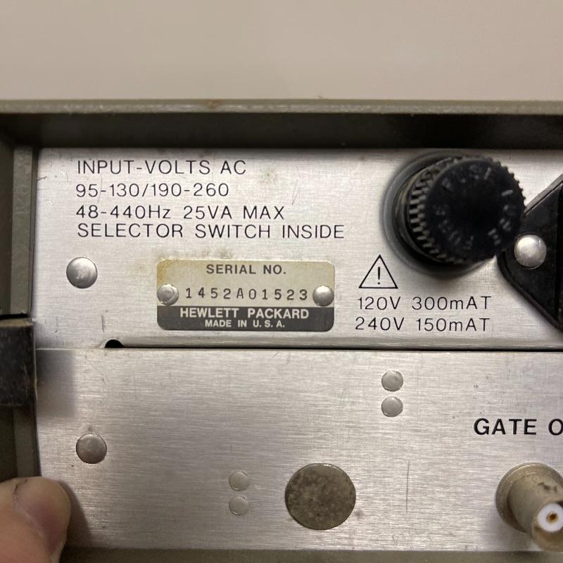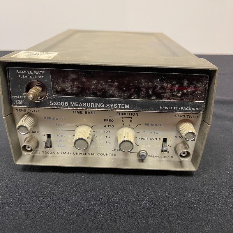 HP 5300B measuring system, also says 5302A 50 MHz Universal Counter. Does not have a cord.