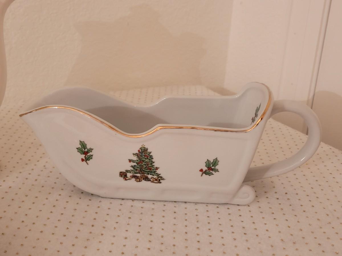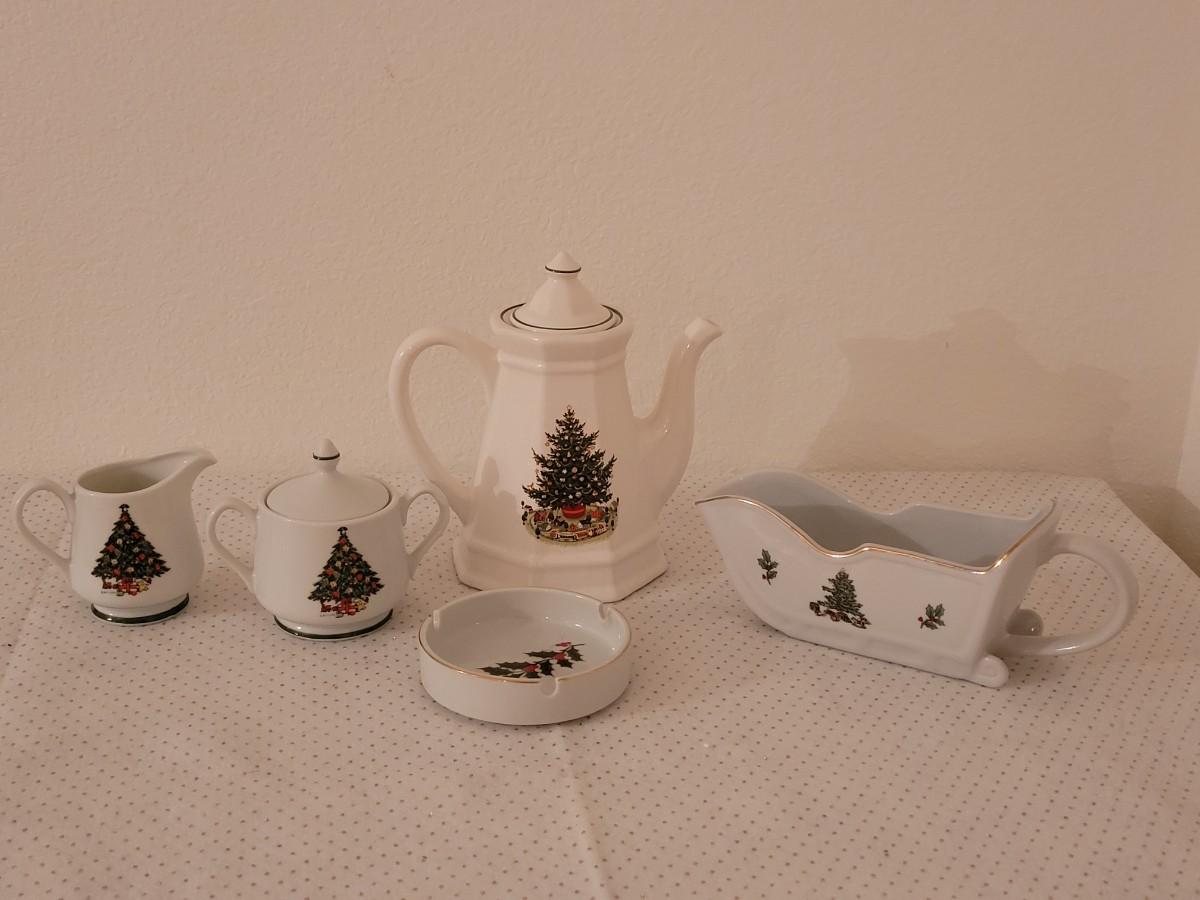 Lot 283:  Vintage Mixed Christmas Tea Set, Sleigh Dish and Ashtray