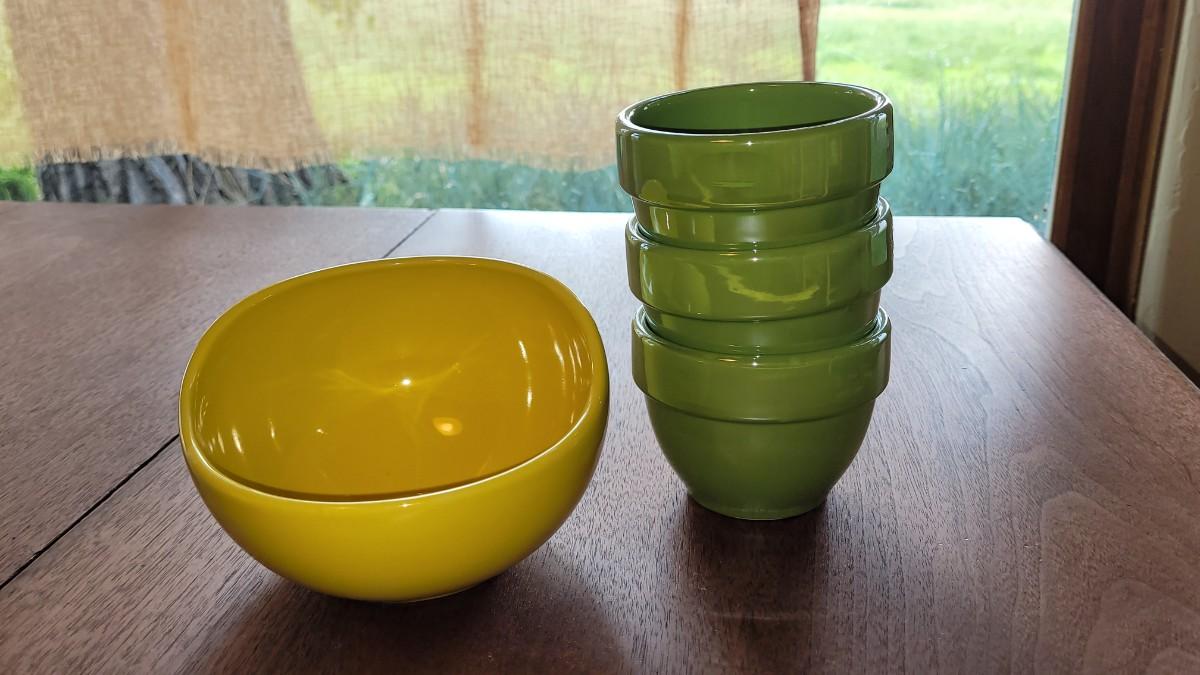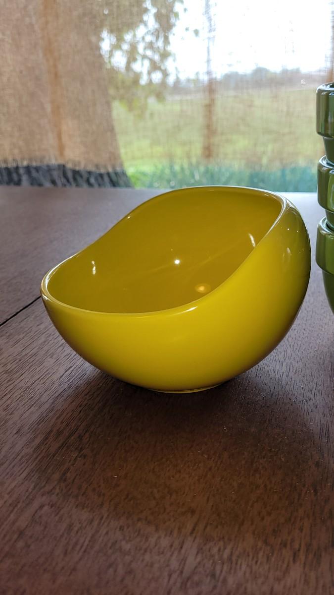 Lot 283: Yellow Salsa Bowl and Green Iridescent Bowls