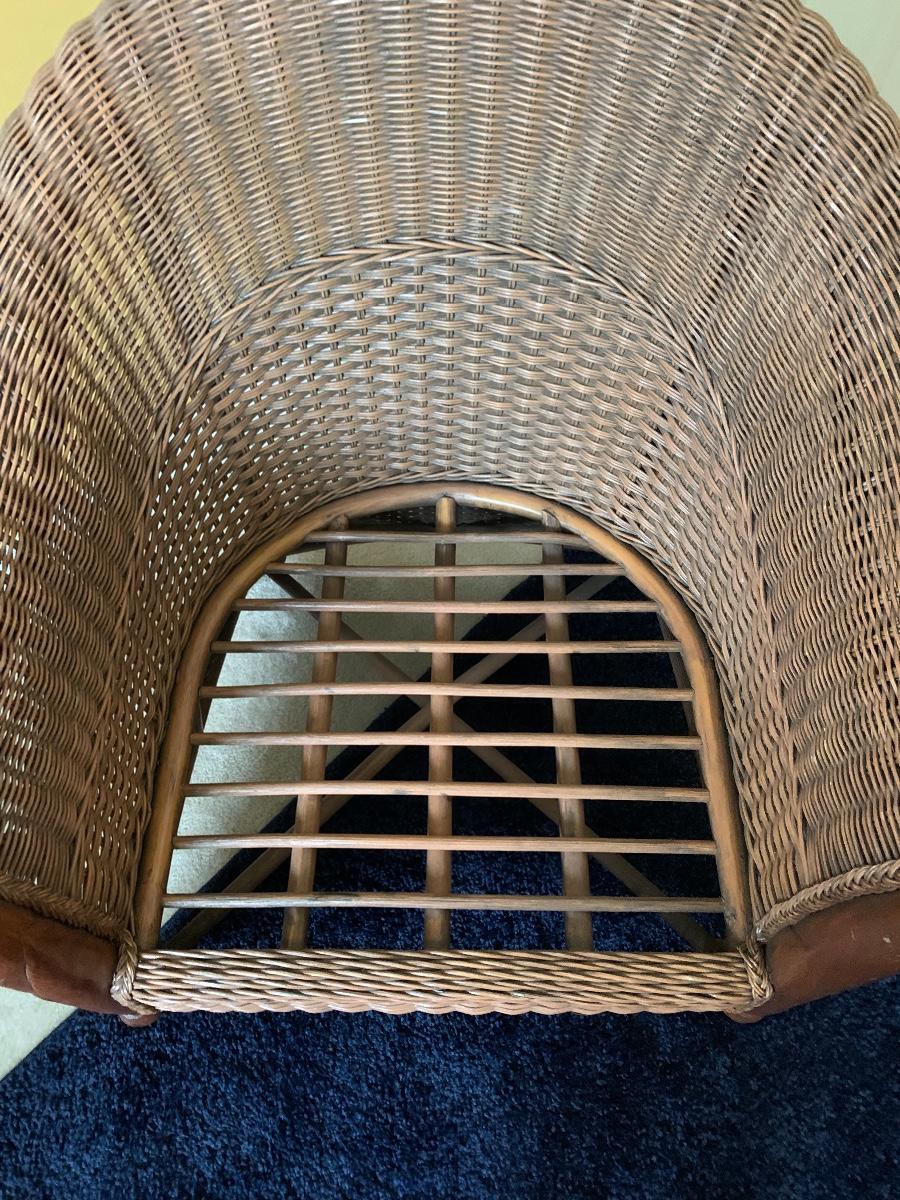 Lot 283: Natural Rattan / Wood Carved Goose Arm Accent Chair