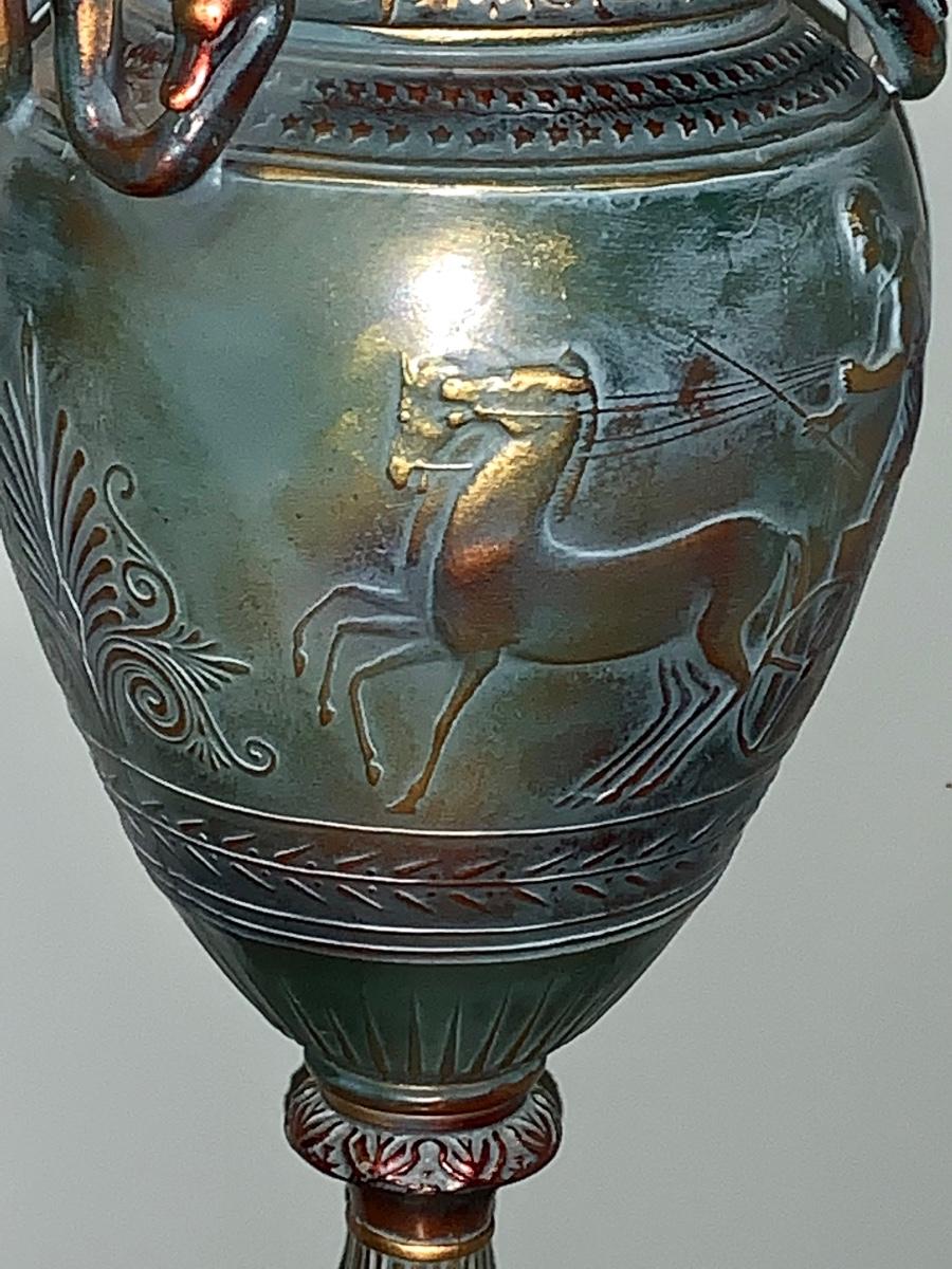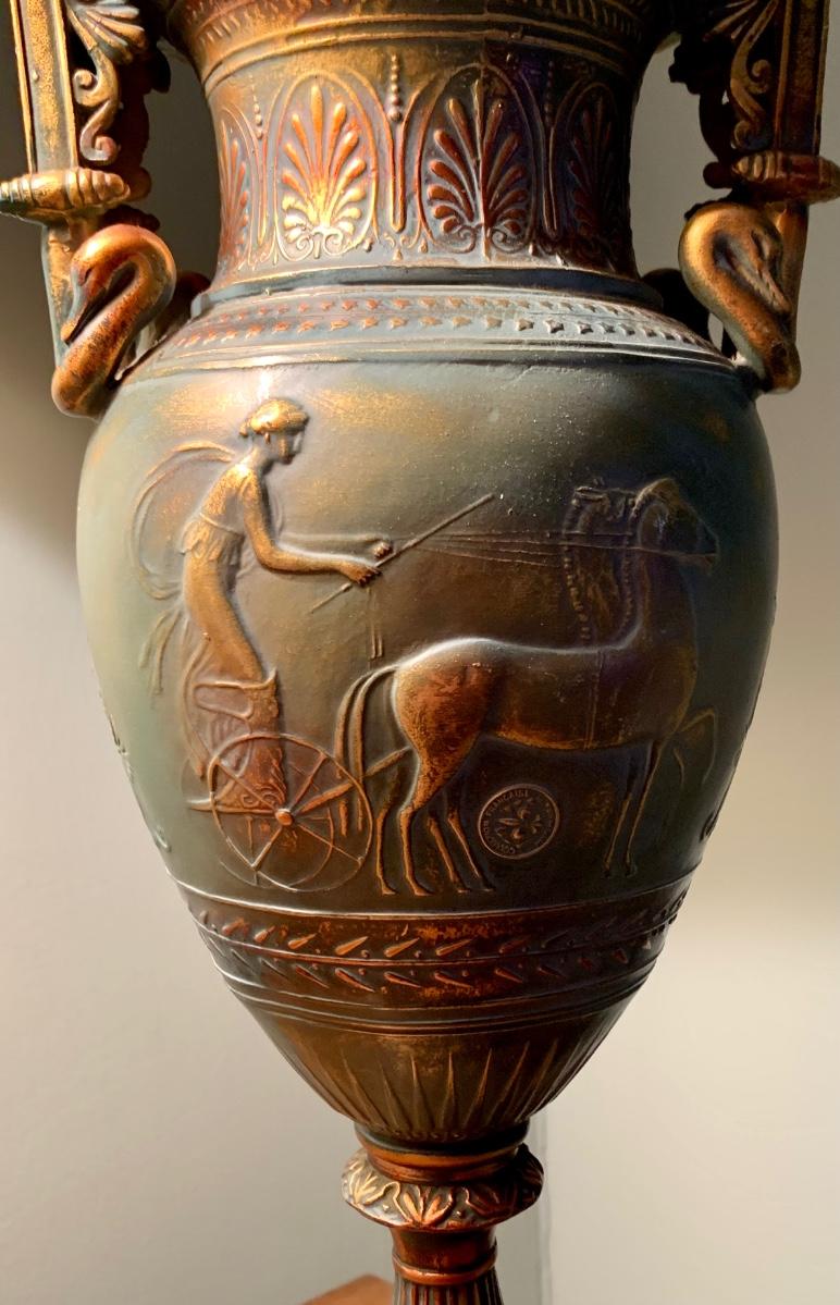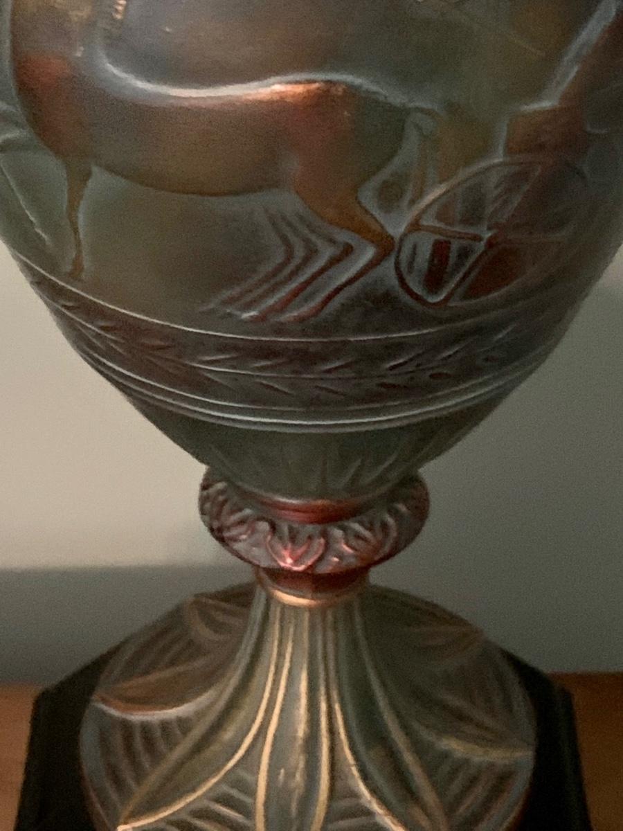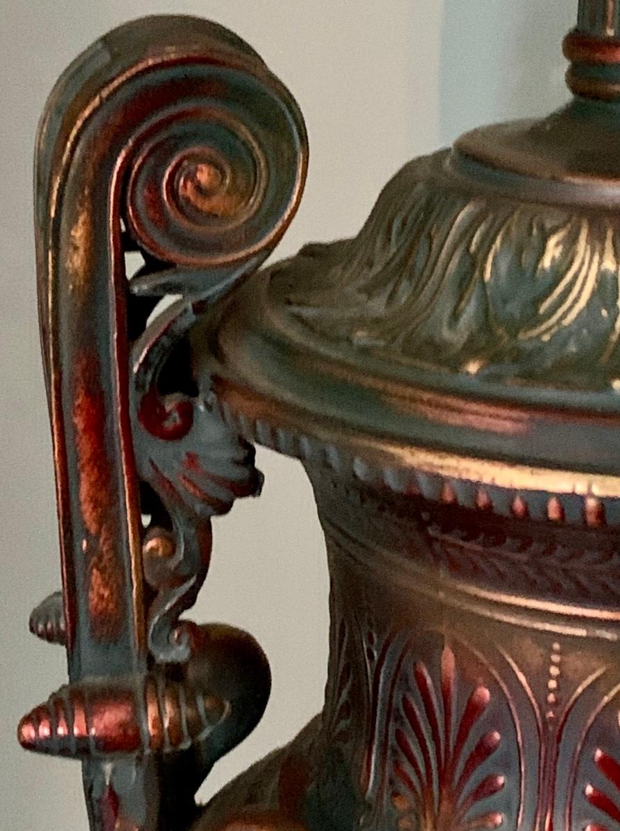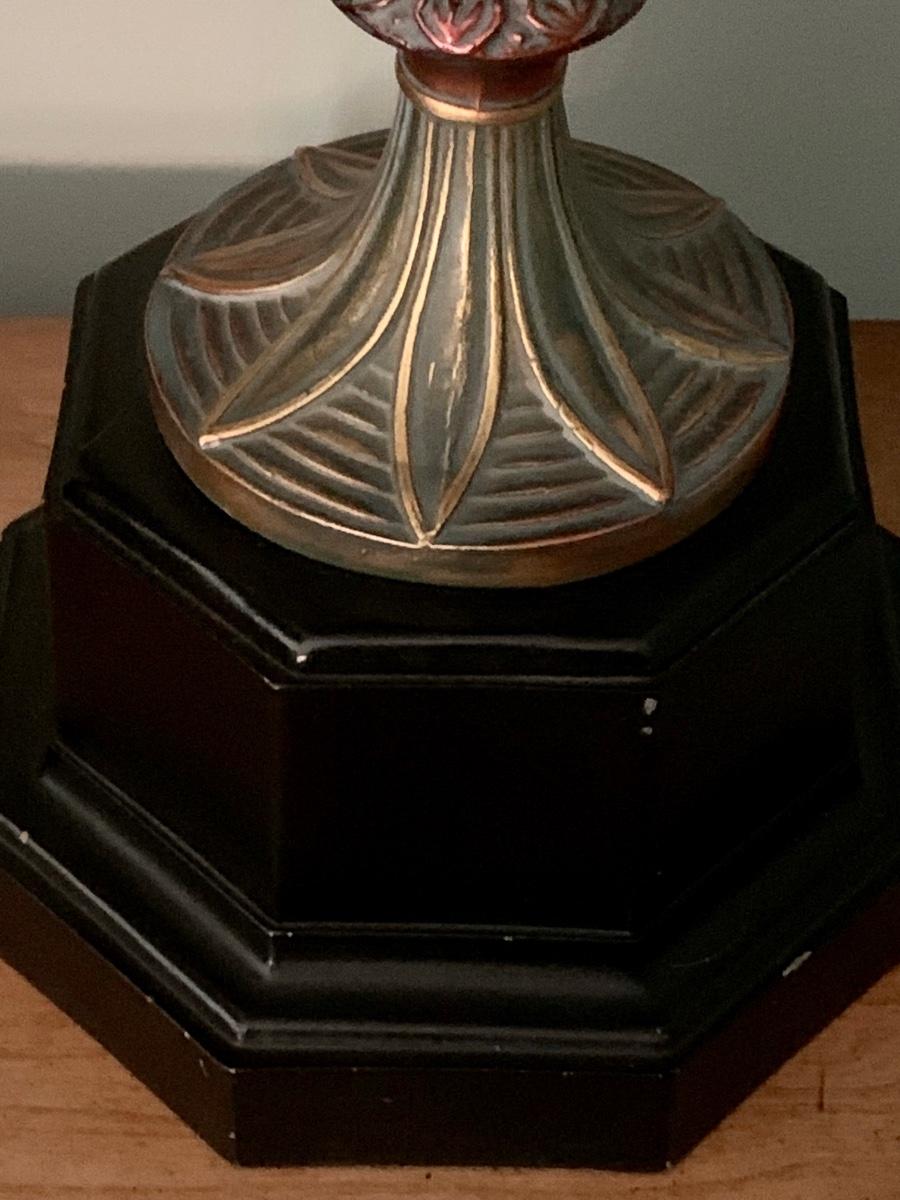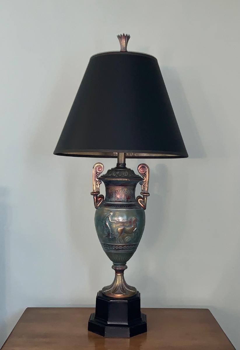 Beautiful ornate cast metal lamps with a chariot motif. These were made by Collection Francaise, Made in USA seal. Pictured in two different lights to show metalwork. Please see all pictures as they are the best representation of the items. The pictures show condition, measurements if taken, and what is included in the lot. Due to the large amount that we photograph and the time frame, we are not always able to take measurements. All items unless noted, are pre-owned and have been used. If you purchased furniture, you must bring help. We do not allow one person to carry large furniture out on their own. Bring help, tools and a truck for the safety of our client’s homes, and your personal safety. Company policy. Thank you.
