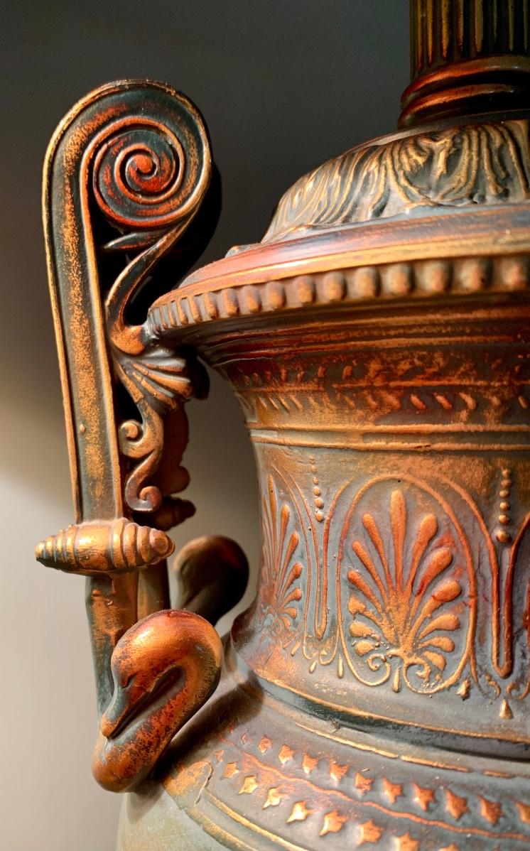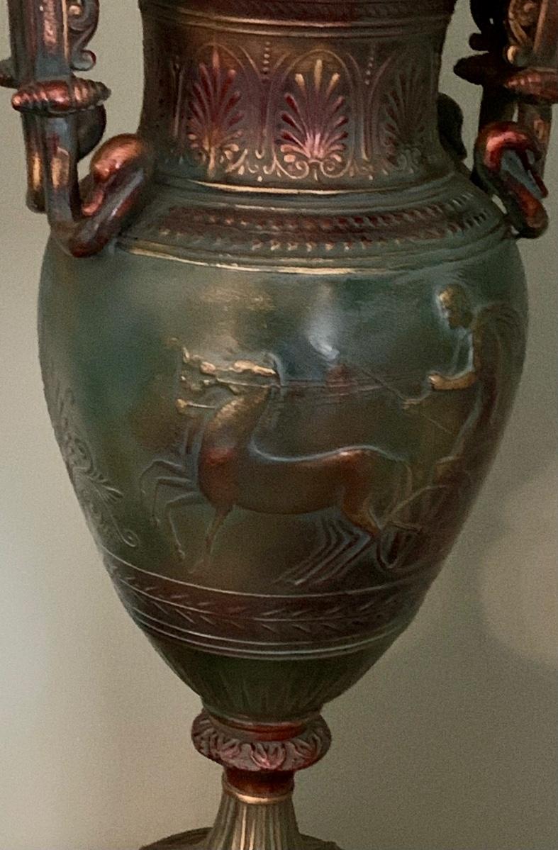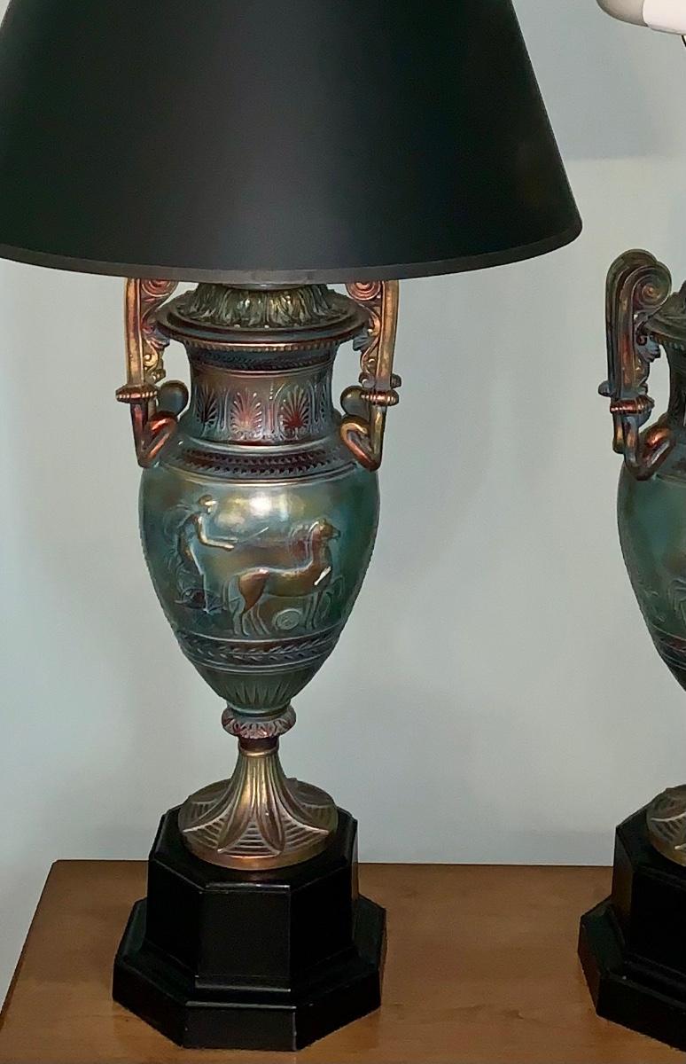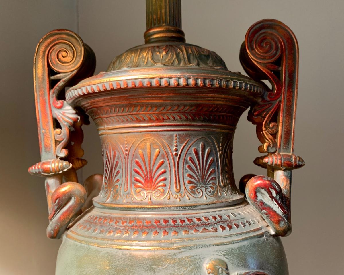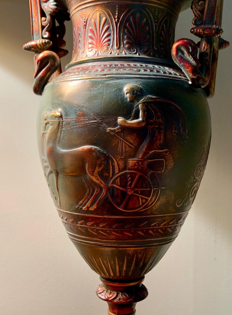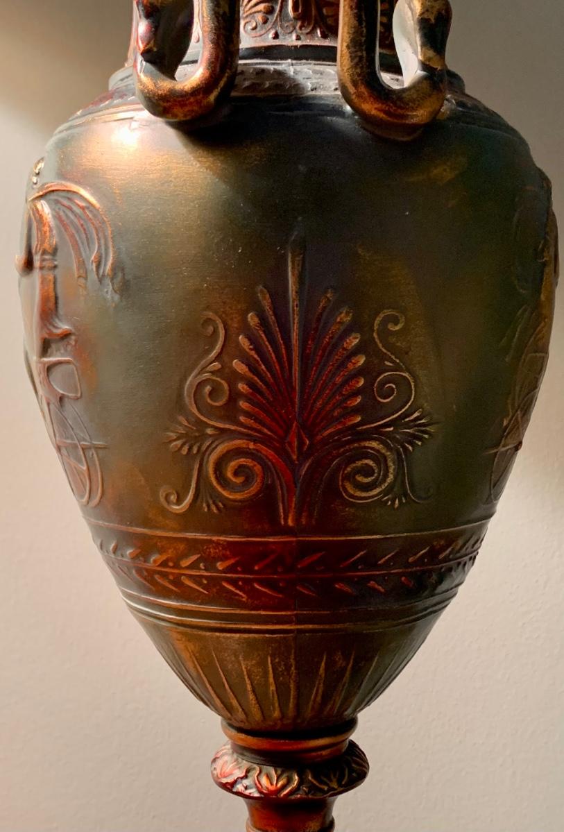 Beautiful ornate cast metal lamps with a chariot motif. These were made by Collection Francaise, Made in USA seal. Pictured in two different lights to show metalwork. Please see all pictures as they are the best representation of the items. The pictures show condition, measurements if taken, and what is included in the lot. Due to the large amount that we photograph and the time frame, we are not always able to take measurements. All items unless noted, are pre-owned and have been used. If you purchased furniture, you must bring help. We do not allow one person to carry large furniture out on their own. Bring help, tools and a truck for the safety of our client’s homes, and your personal safety. Company policy. Thank you.