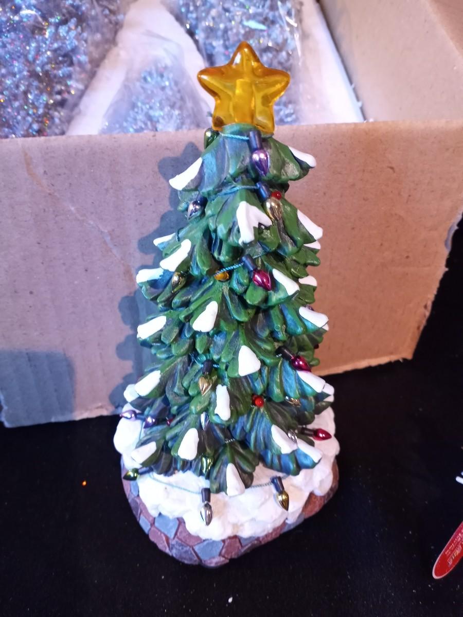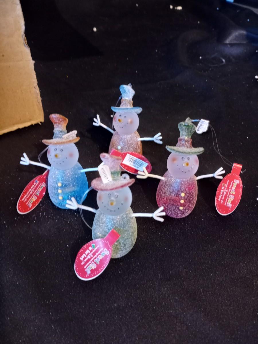 TREES 1 LIGHTS UP ON BATTERYS AND OTHERS FOR VILLAGES AND SWEET STUFF SNOWMEN ORNAMENTS