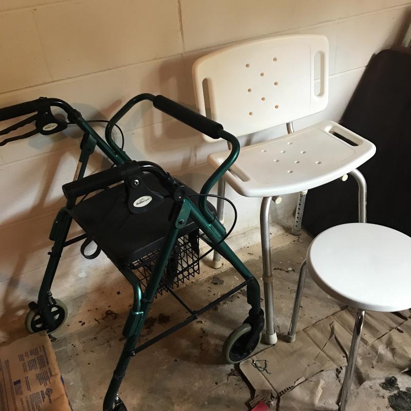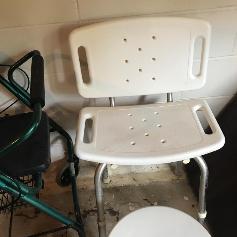 Do you know someone that could use some assistance? Post surgery or aging these items are useful. The assortment includes an Featherlight Rolling Folding Walker with Storage, supported toilet seat, shower chair, reacher, Stool and two folding walkers. No shipping. Local pick up only.