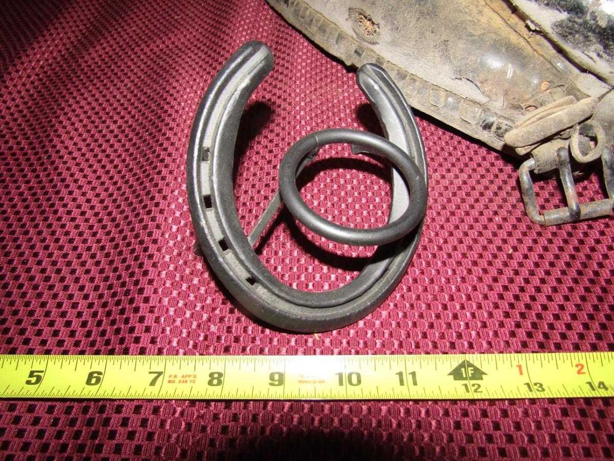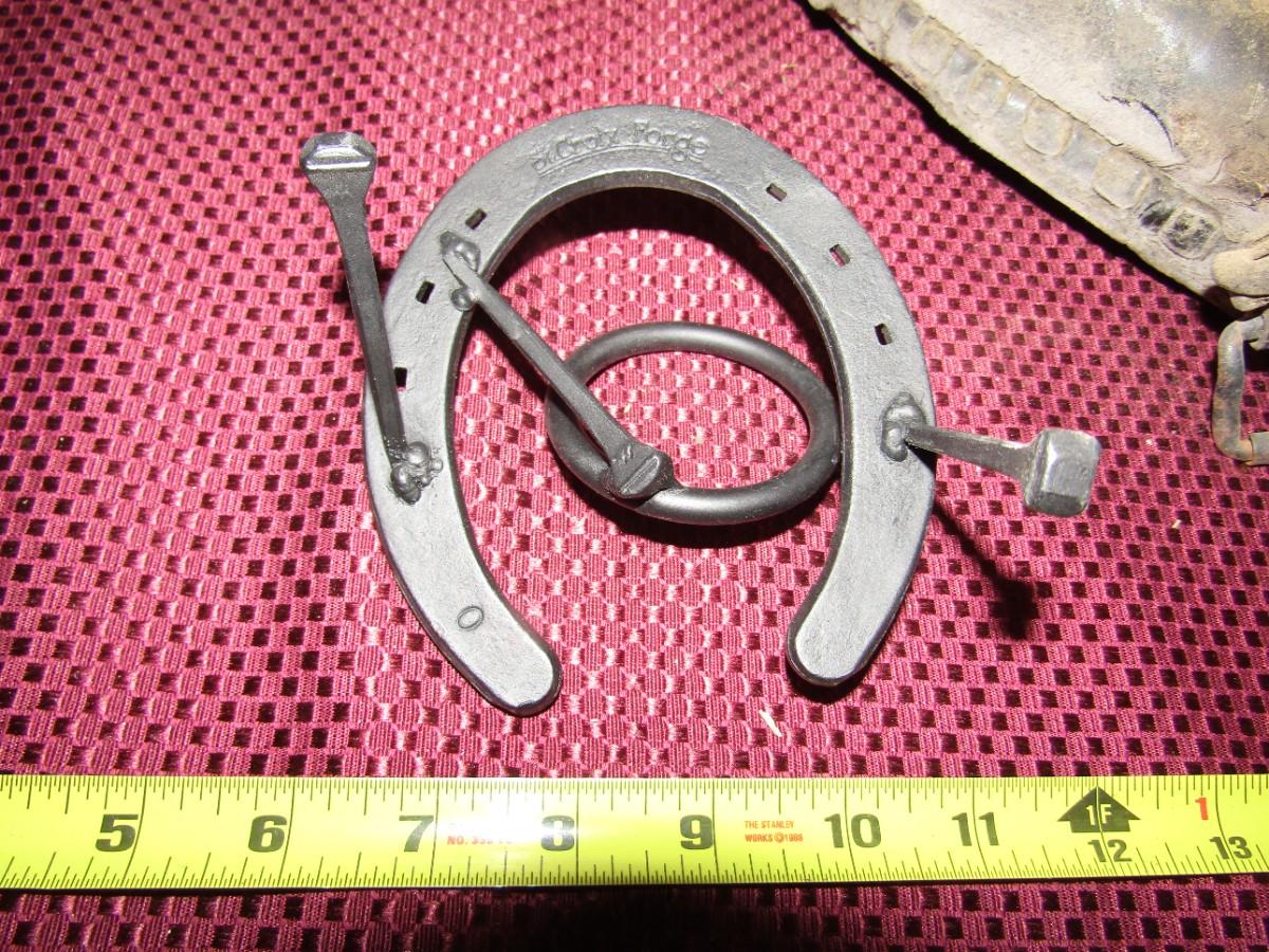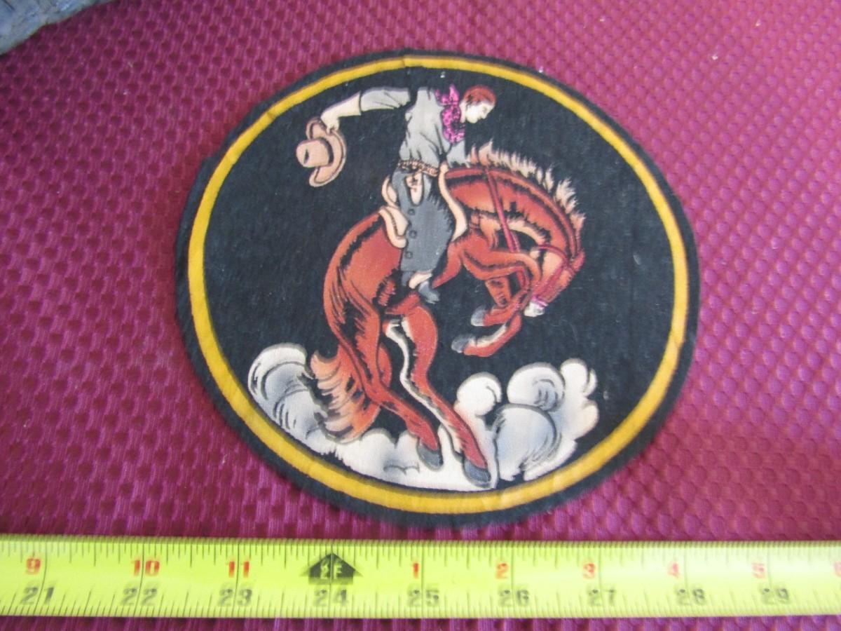 REPURPOSED HORSE SHOE AND PATCH OF COWBOY RIDING  A BUCKING HORSE