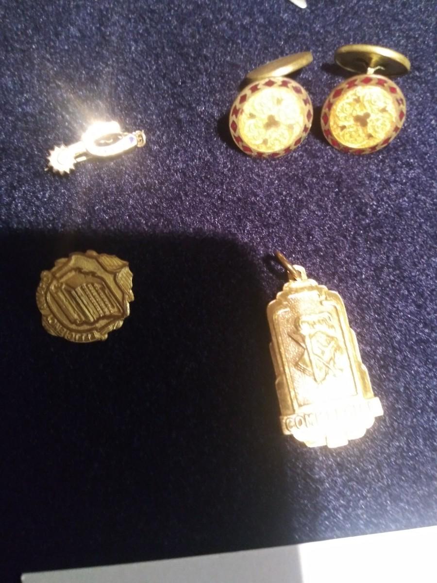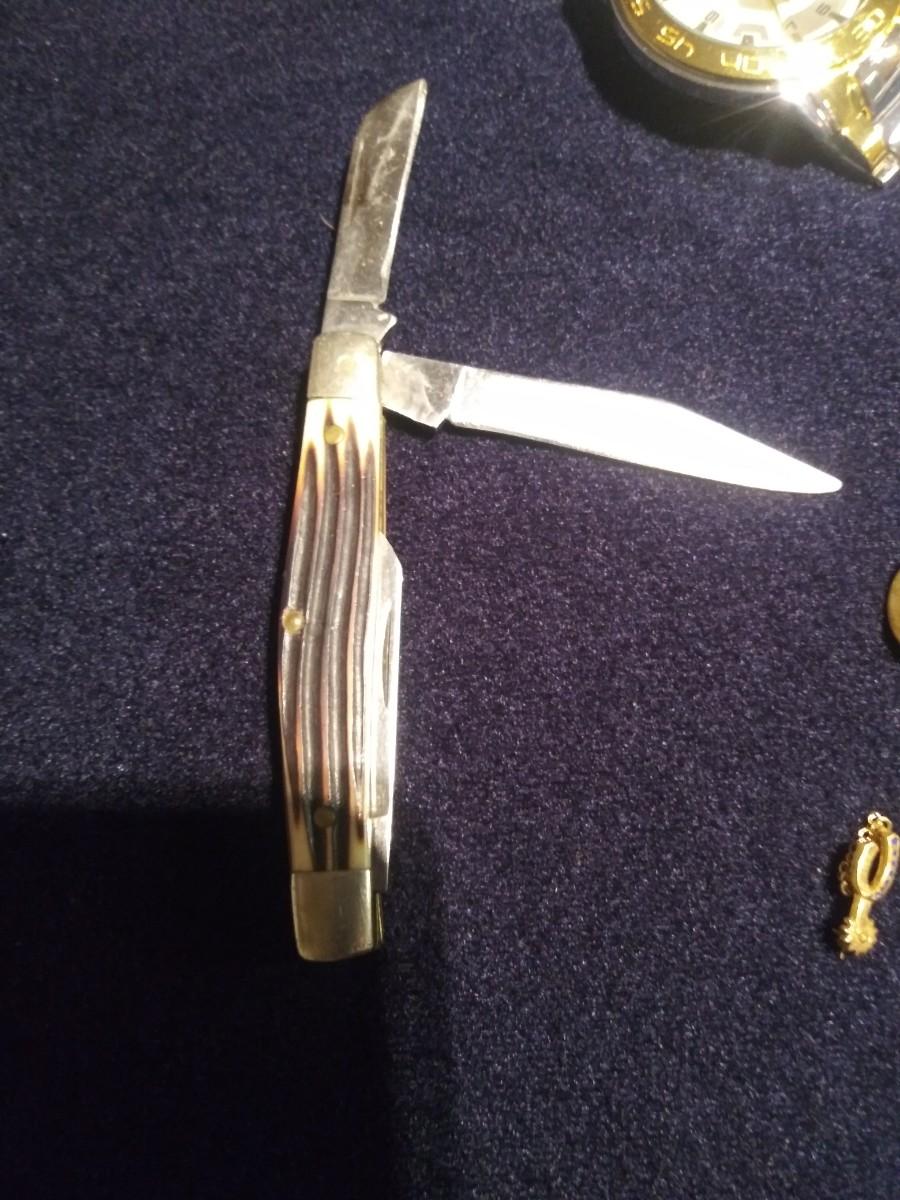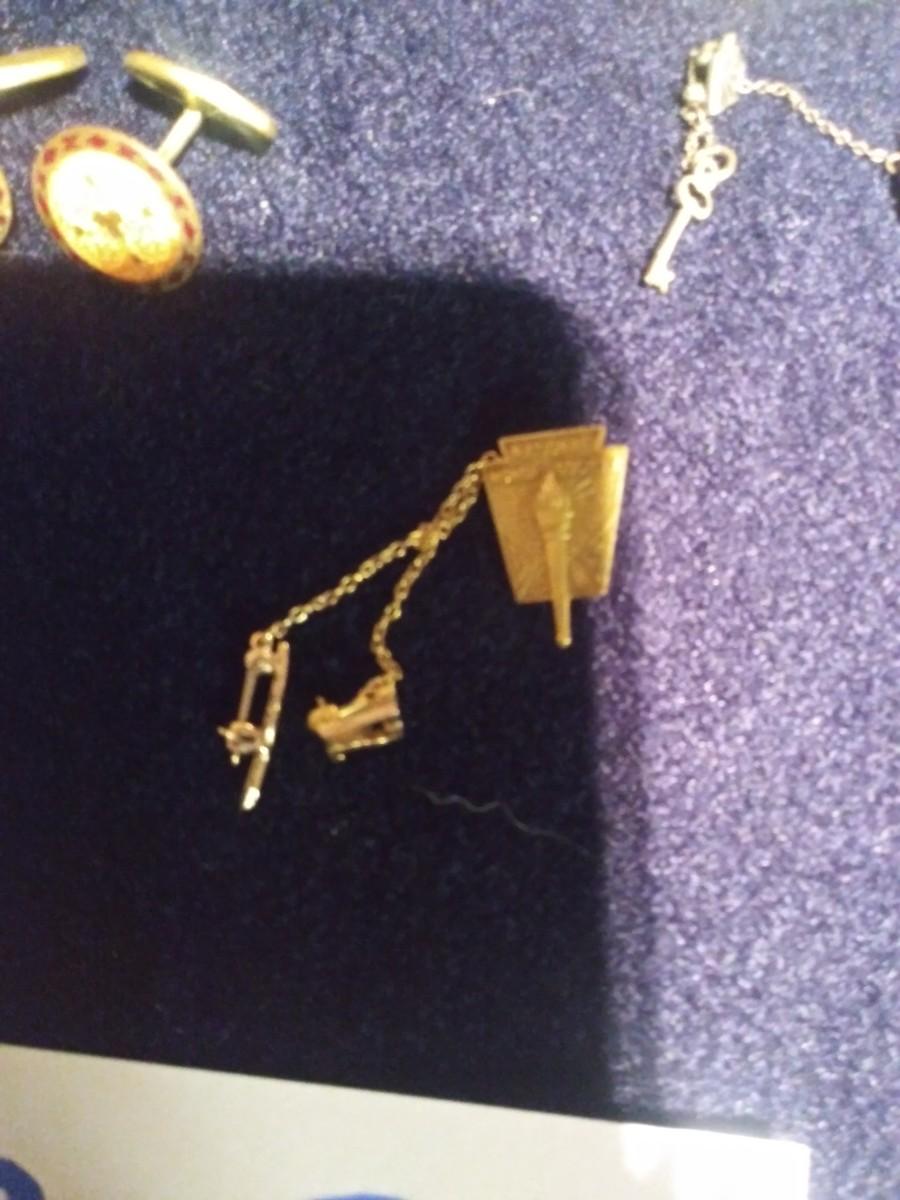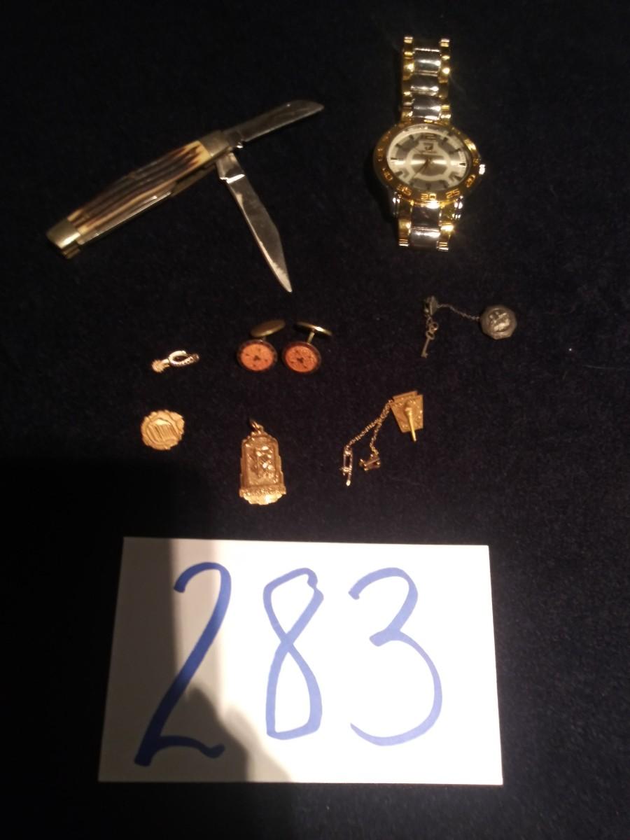 Pocket knife, watch and pins