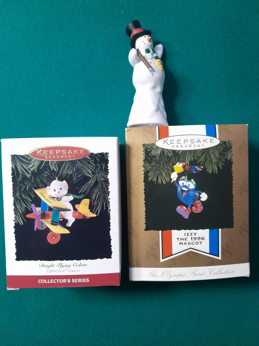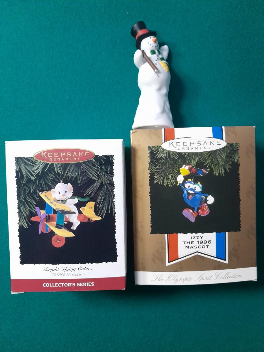 PARTYLITE SNOWMAN AND HALLMARK CHRISTMAS ORNAMENTS