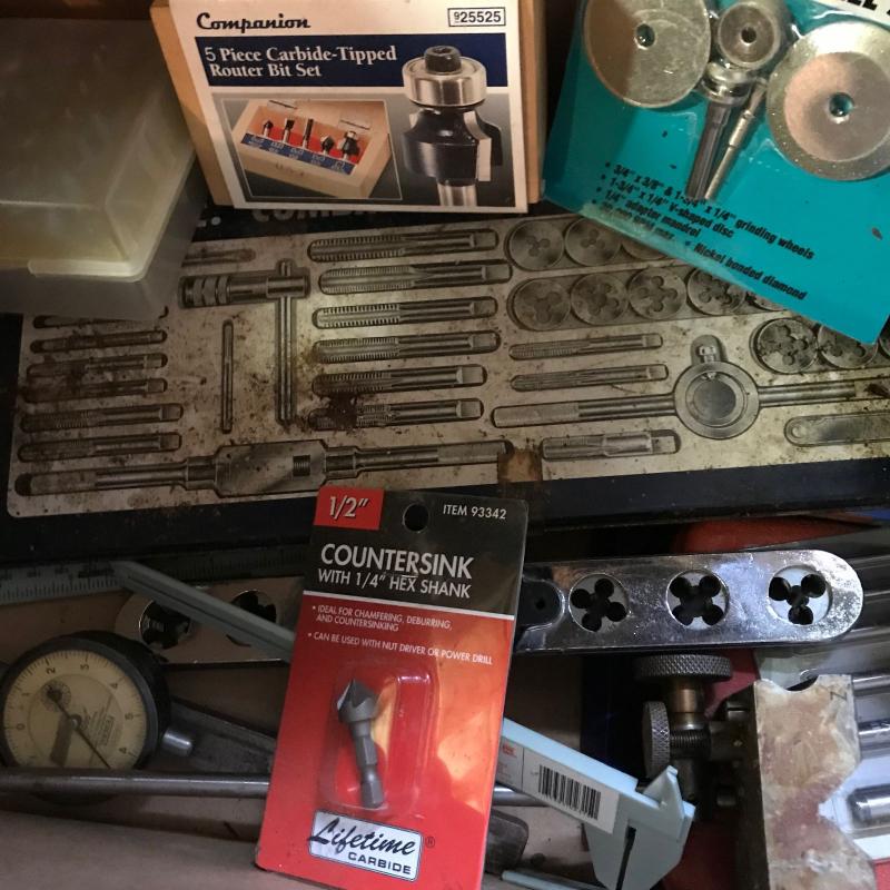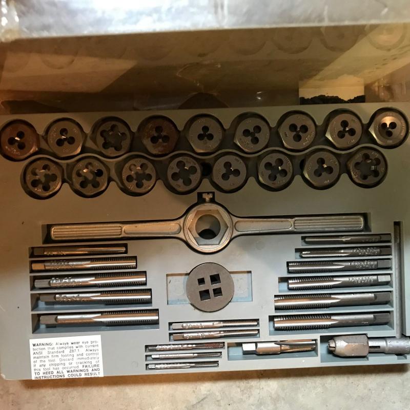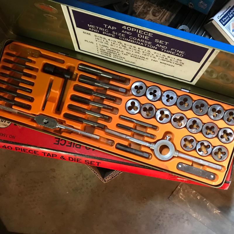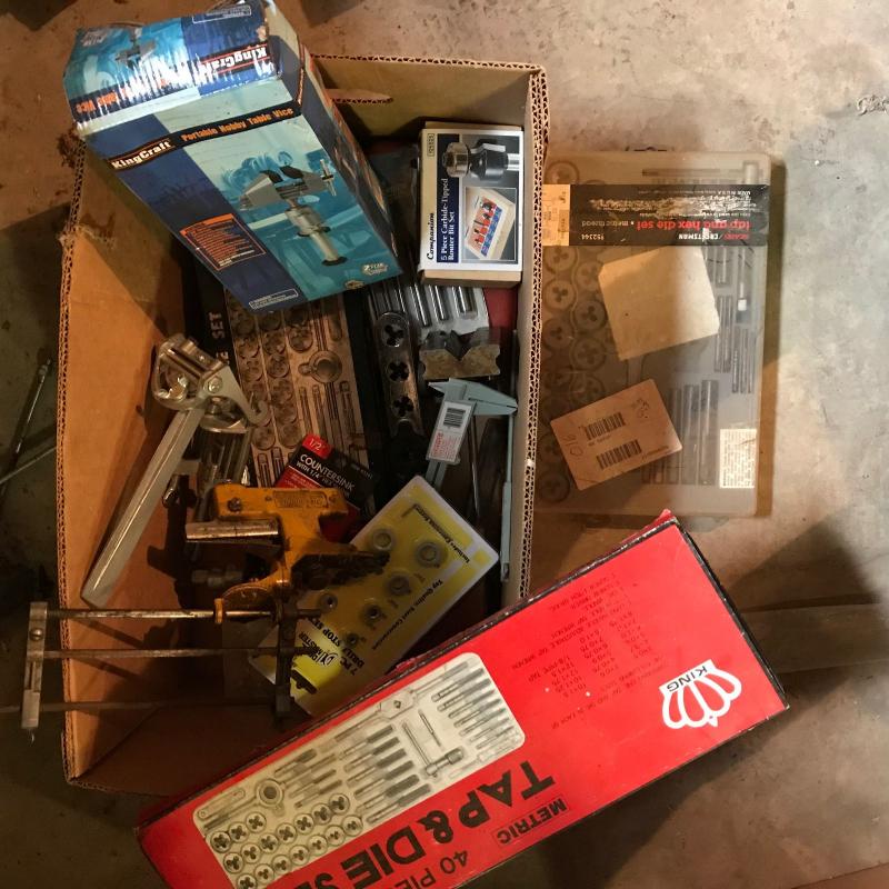 Lot includes a box of precision tools including tap & die sets. No shipping. Local pick up only.