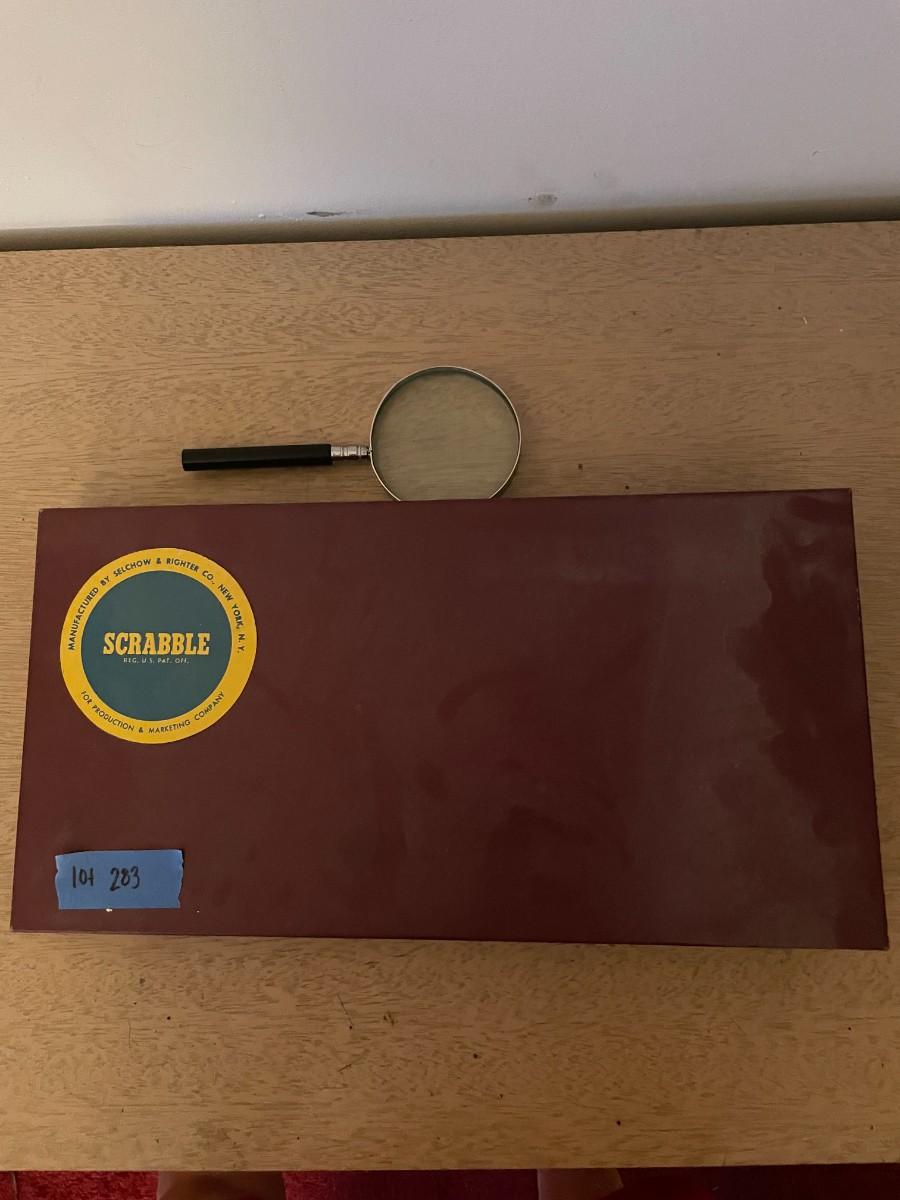 Lot 283- Vintage scrabble game and magnifying glass