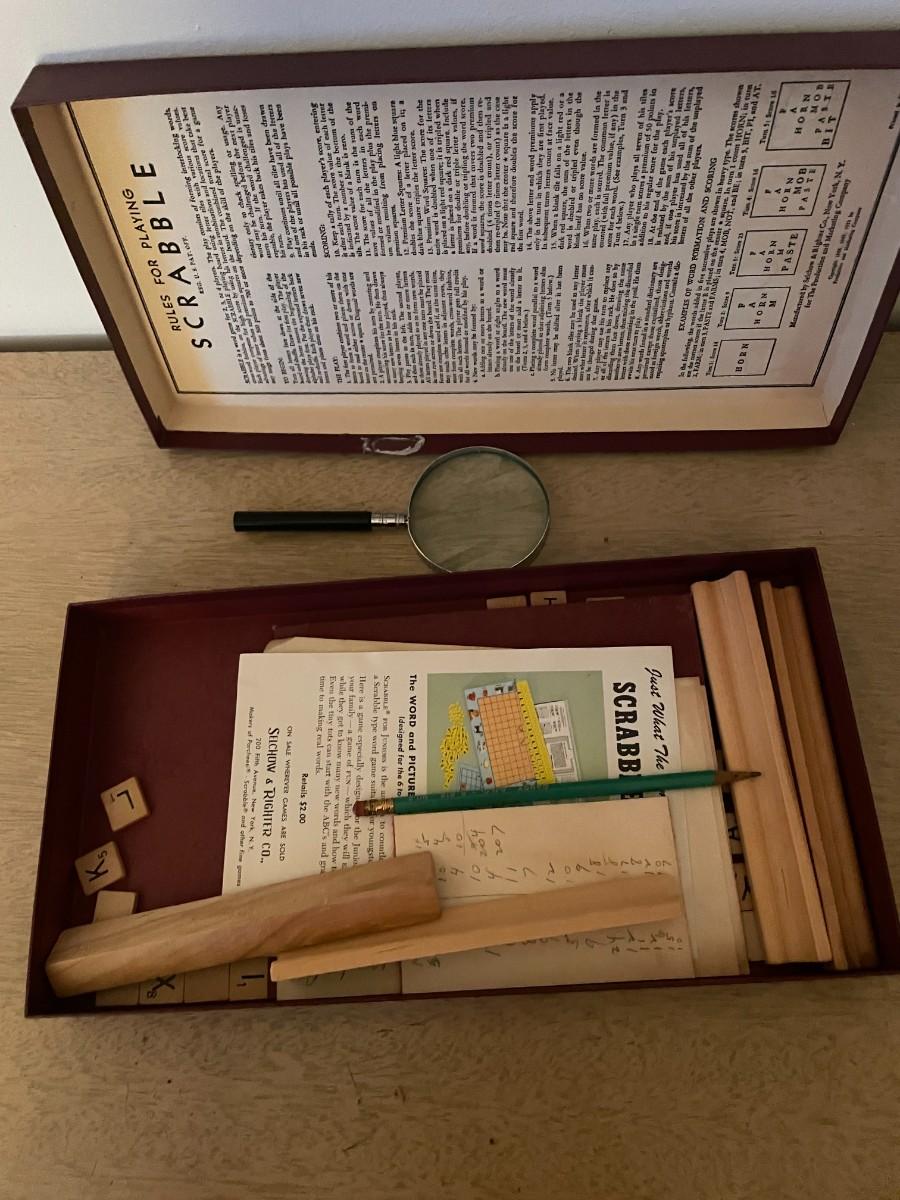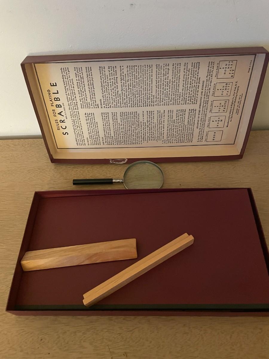 Vintage scrabble game and magnifying glass