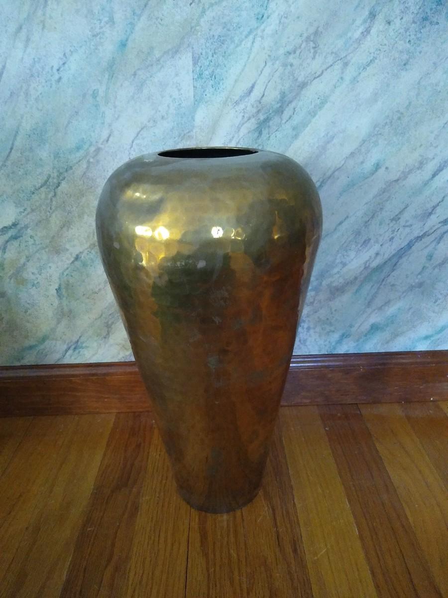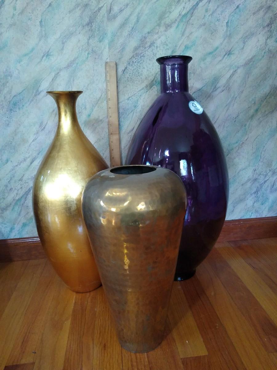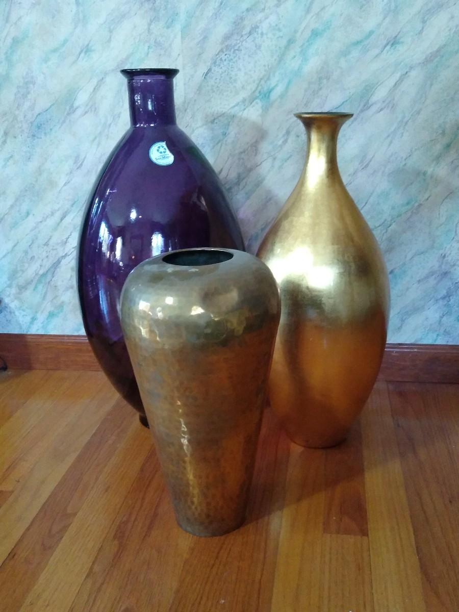 LOT 283L: San Miguel Purple Recycled Glass Vase, Hammered Bronze Vase & More