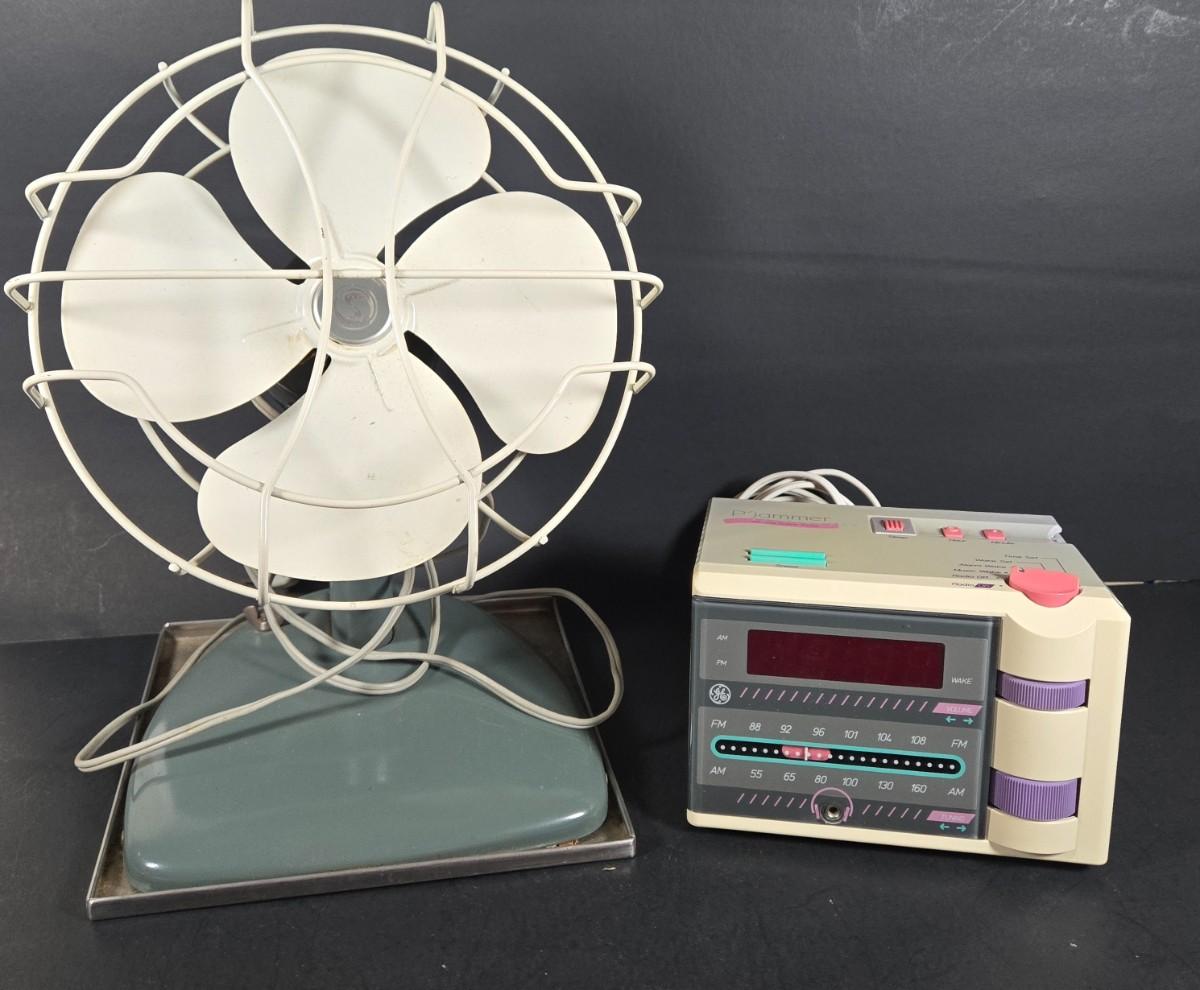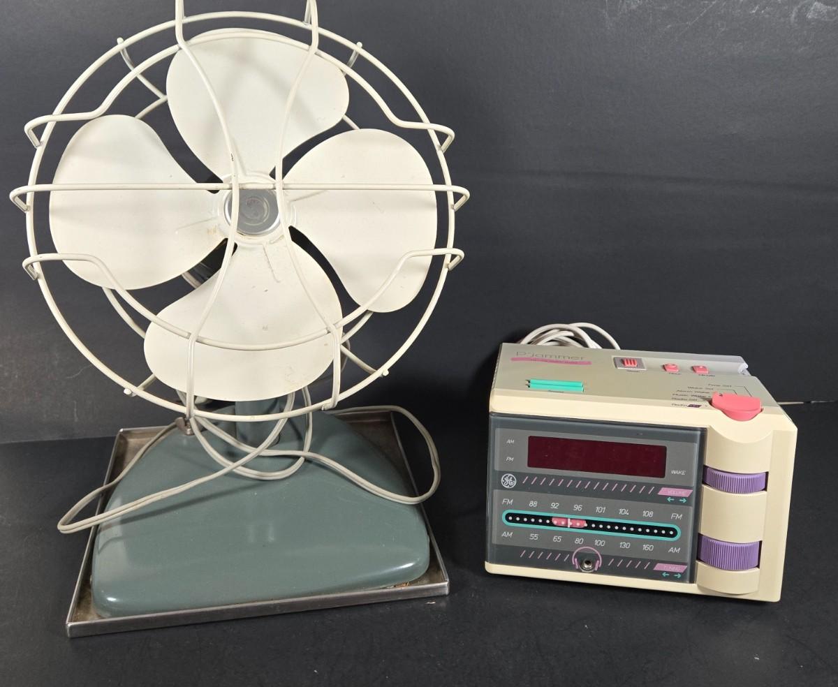 LOT 284: Vintage Desk Fan and GE P'JAMMER AM FM CLOCK RADIO ; Both Untested