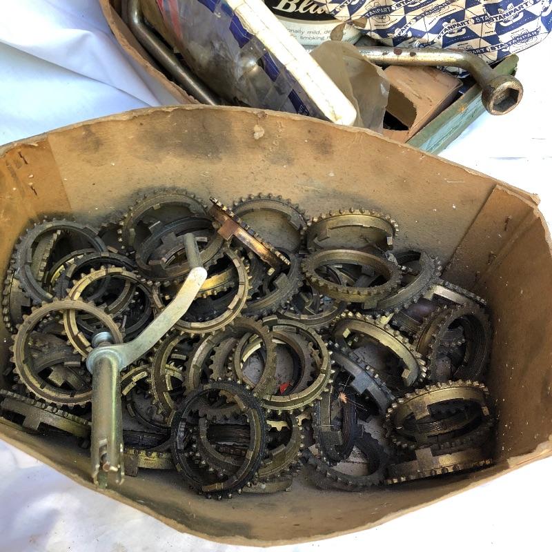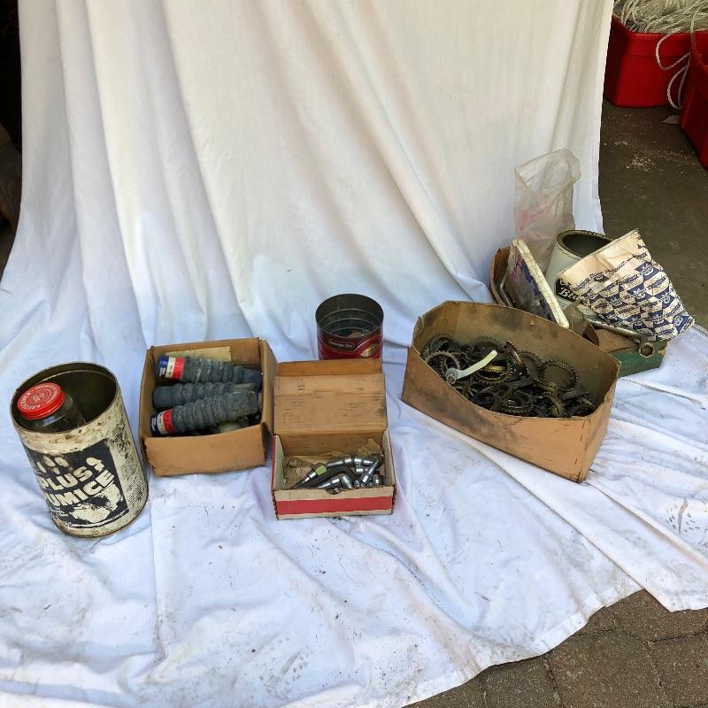 This lot includes a wide range of metal nuts, bolts, synchro rings, and more. See images. Local pick up only.