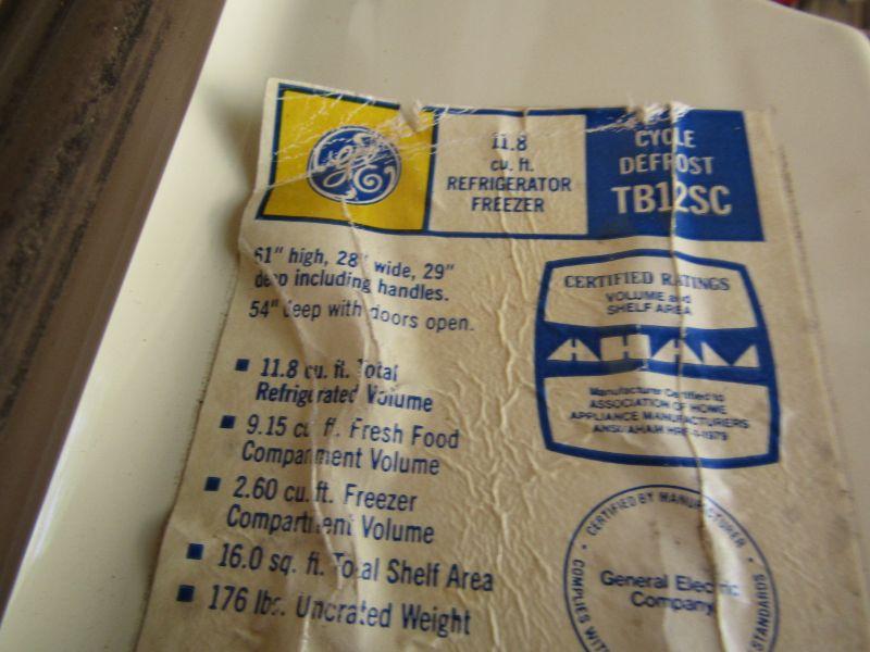 SR-1 GE GARAGE REFRIGERATOR