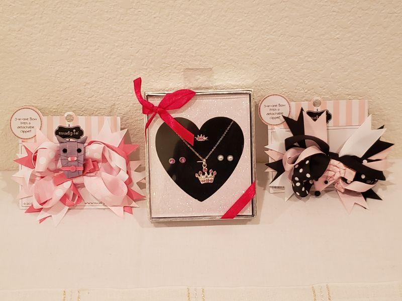 Lot 284: NEW Hairbows and Princess Jewelry Set