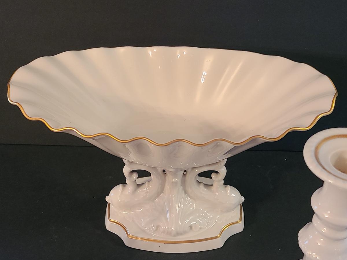 Lot 284: Vintage Lenox Aquarius Collection Ivory Pedestal Dolphin Compote and More