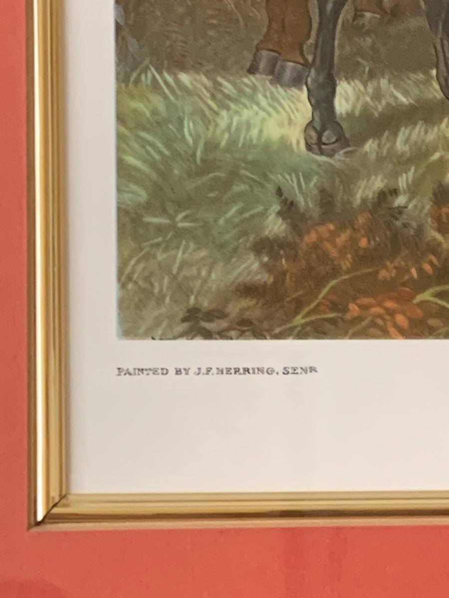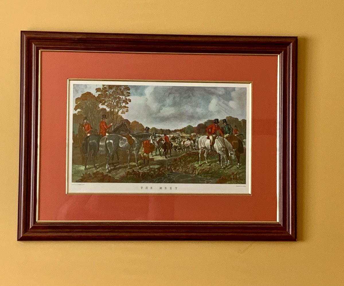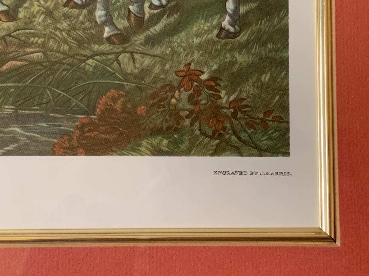 Beautifully framed and matted "The Meet" is painted by J.F. Herring, engraved by J. Harris and measures 32 x 24.