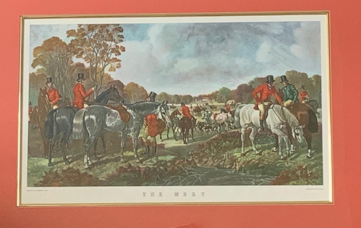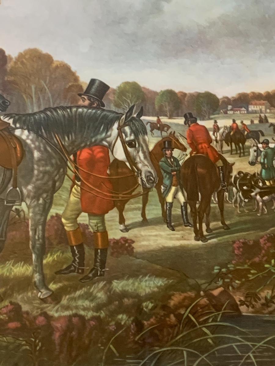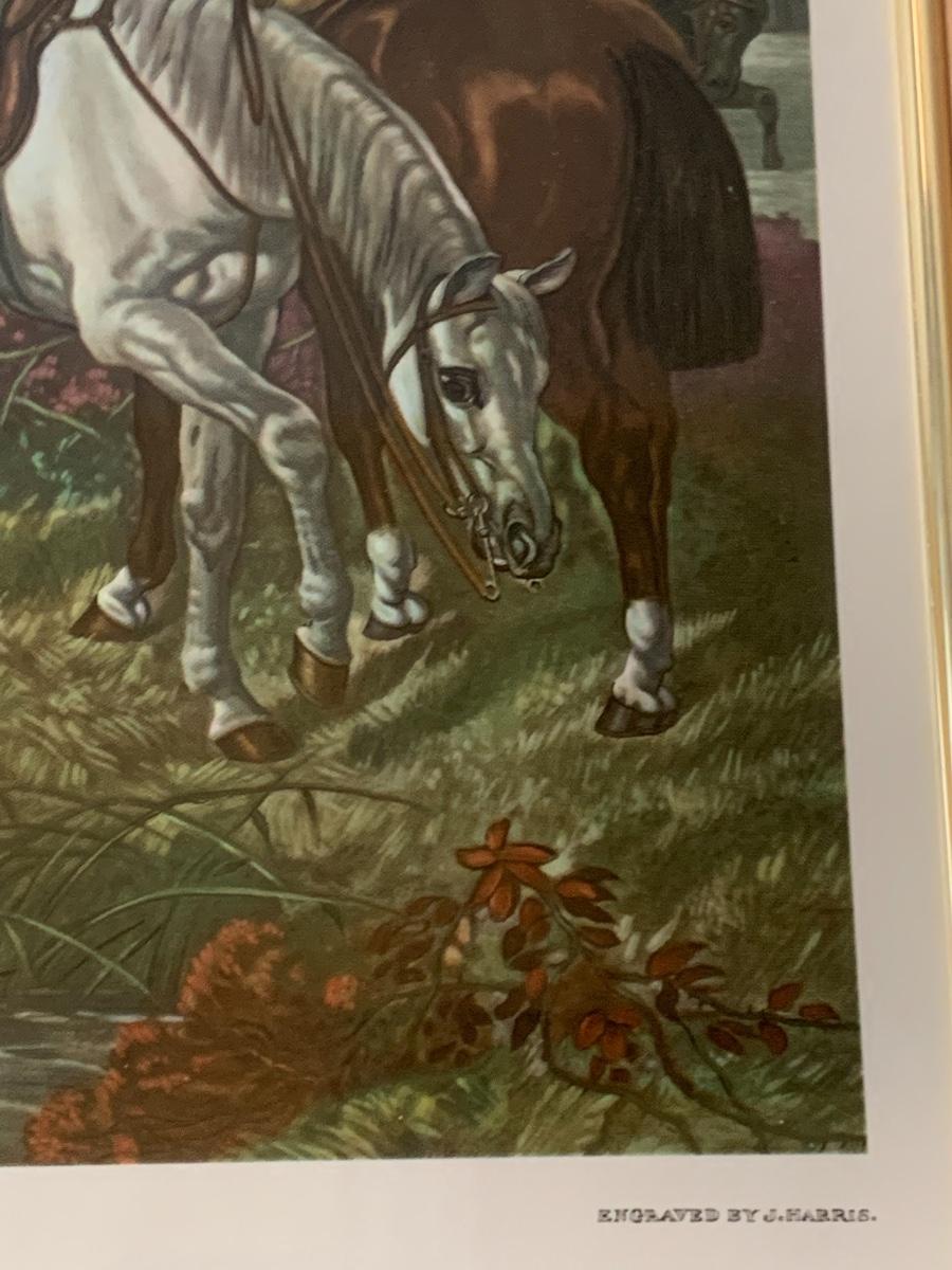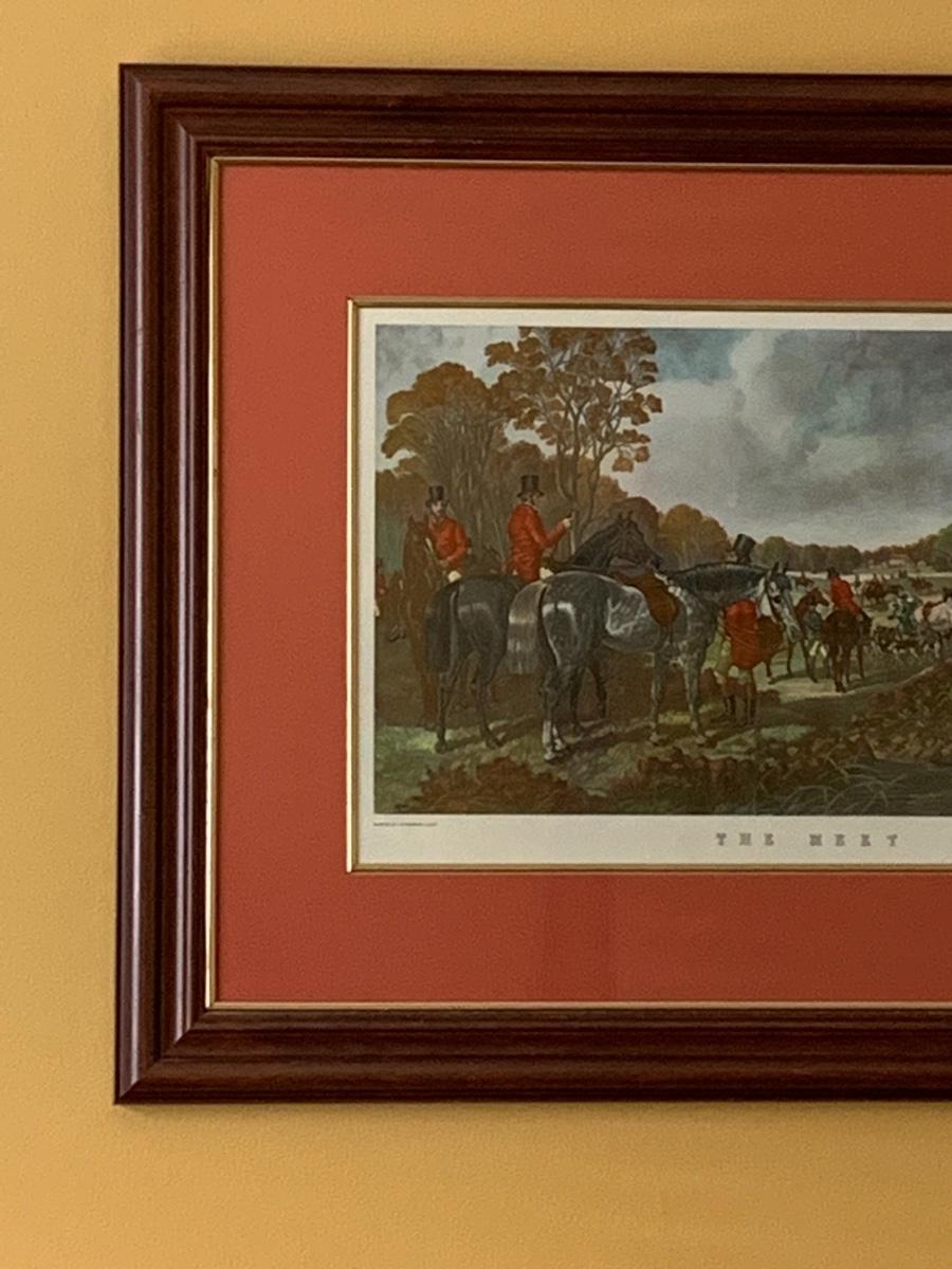 Beautifully framed and matted "The Meet" is painted by J.F. Herring, engraved by J. Harris and measures 32 x 24.