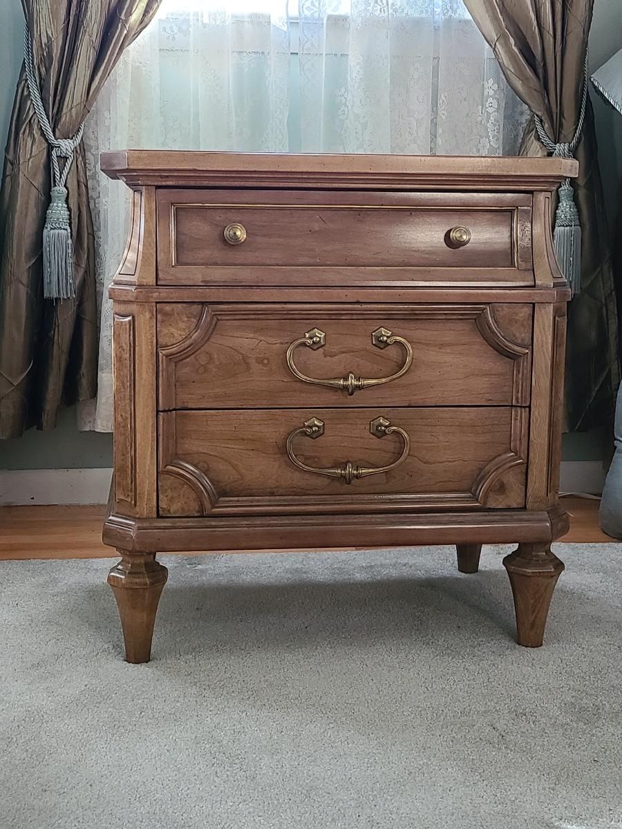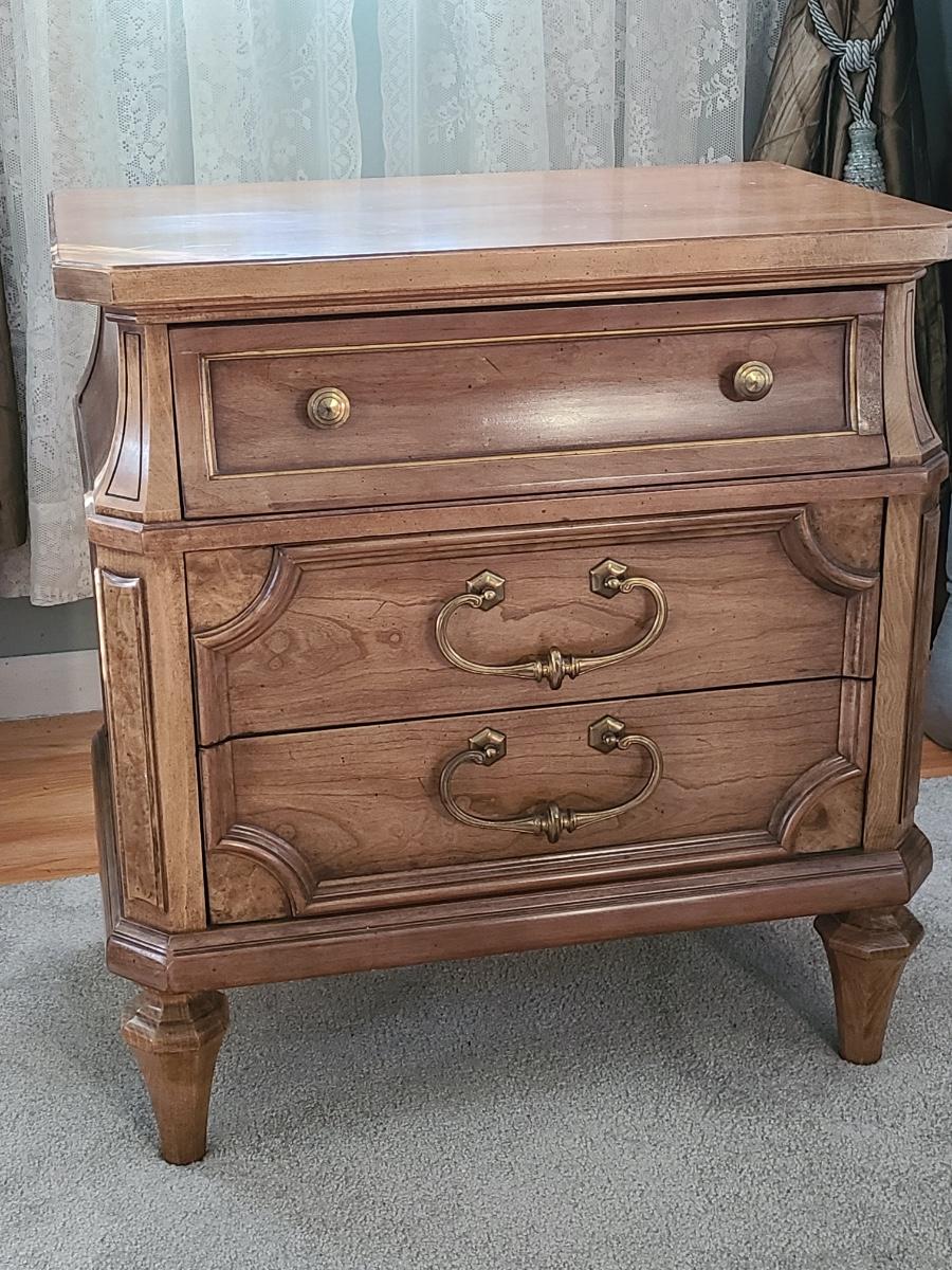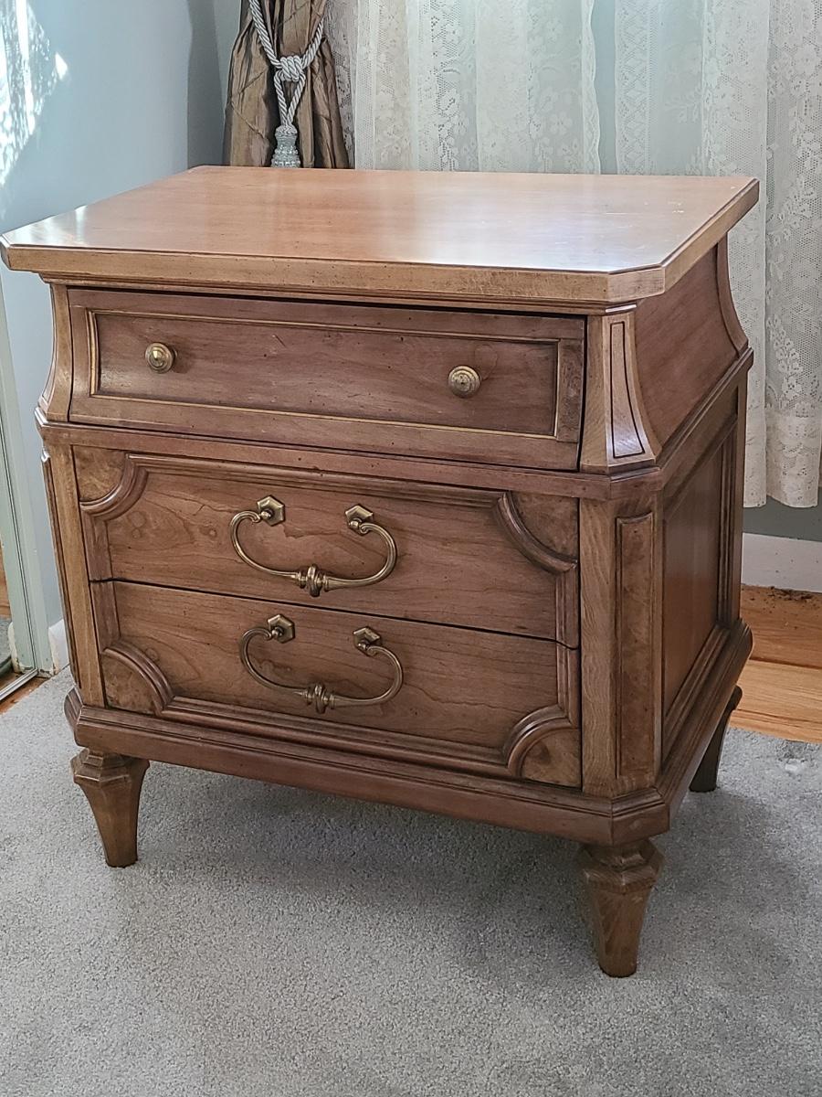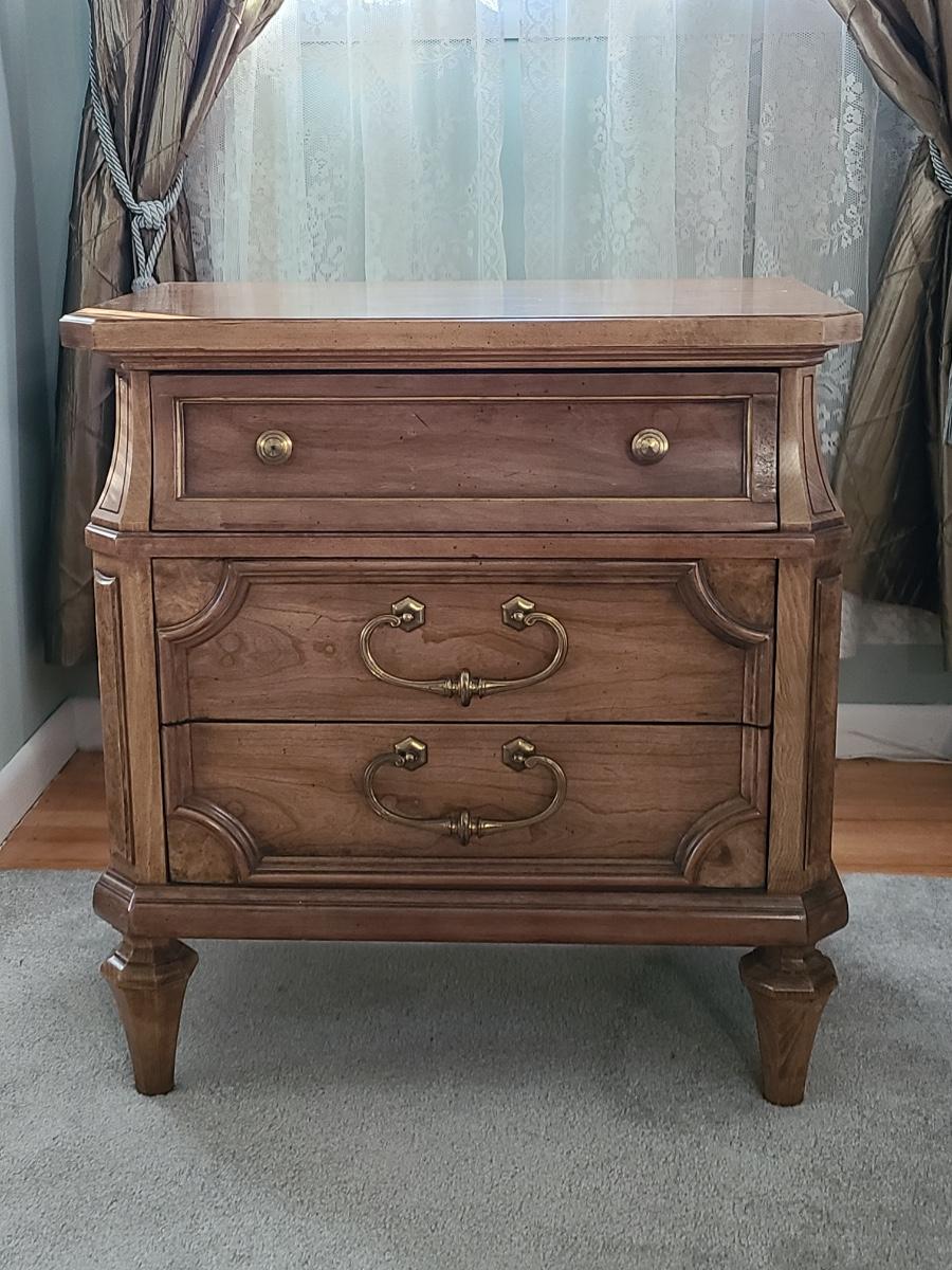 Beautiful set made of solid wood. Thomasville is known for its craftsmanship! These were displayed in a guest room and really never used. They still look new! Only one is pictured but you will get a set! Measuring 25 x 16 x 28 in height. Please see all pictures as they are the best representation of the items. The pictures show condition, measurements if taken, and what is included in the lot. Due to the large amount that we photograph and the time frame, we are not always able to take measurements. All items unless noted, are pre-owned and have been used. If you purchased furniture, you must bring help. We do not allow one person to carry large furniture out on their own. Bring help, tools and a truck for the safety of our client’s homes, and your personal safety. Company policy. Thank you.