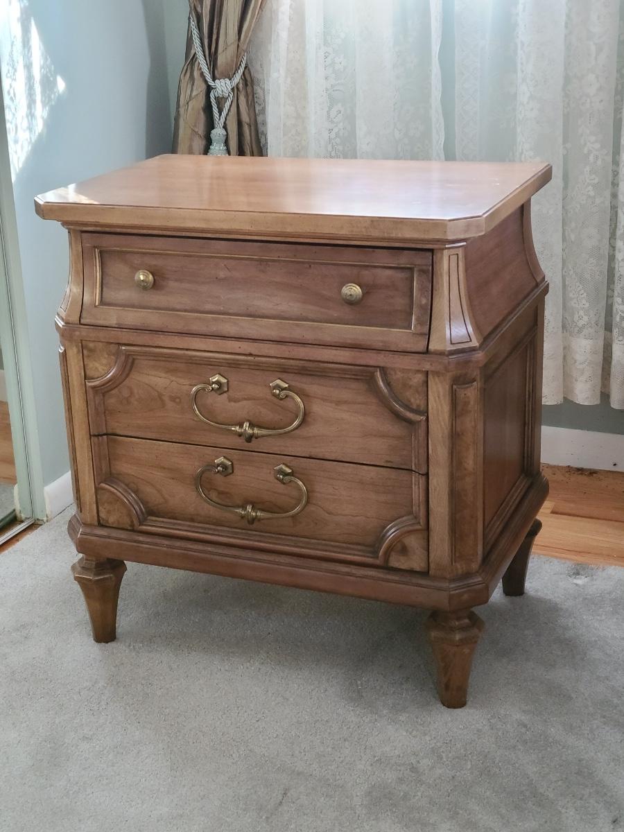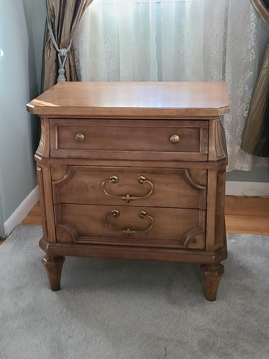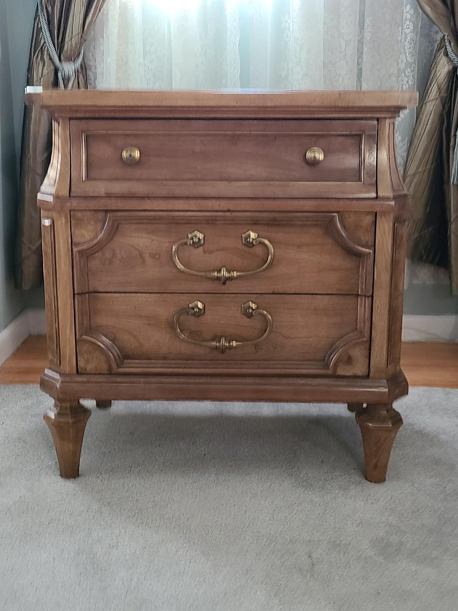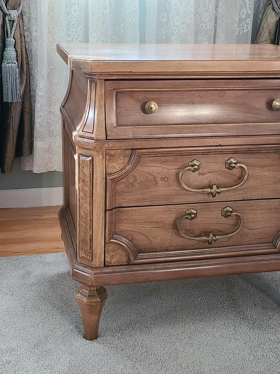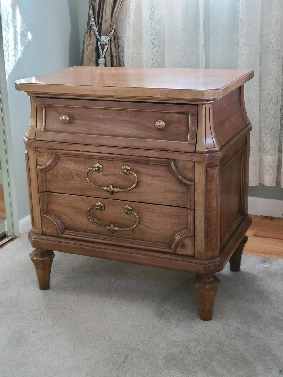 Beautiful set made of solid wood. Thomasville is known for its craftsmanship! These were displayed in a guest room and really never used. They still look new! Only one is pictured but you will get a set! Measuring 25 x 16 x 28 in height. Please see all pictures as they are the best representation of the items. The pictures show condition, measurements if taken, and what is included in the lot. Due to the large amount that we photograph and the time frame, we are not always able to take measurements. All items unless noted, are pre-owned and have been used. If you purchased furniture, you must bring help. We do not allow one person to carry large furniture out on their own. Bring help, tools and a truck for the safety of our client’s homes, and your personal safety. Company policy. Thank you.