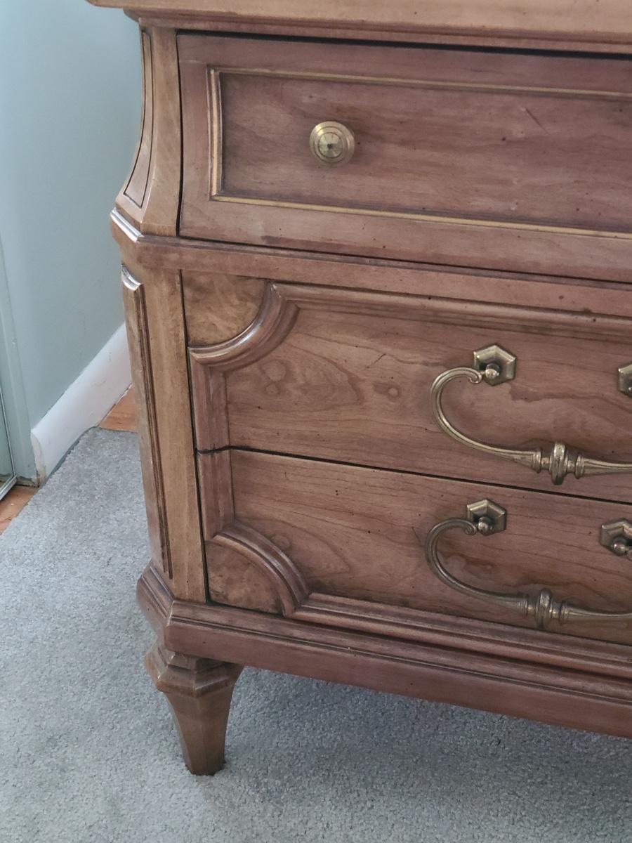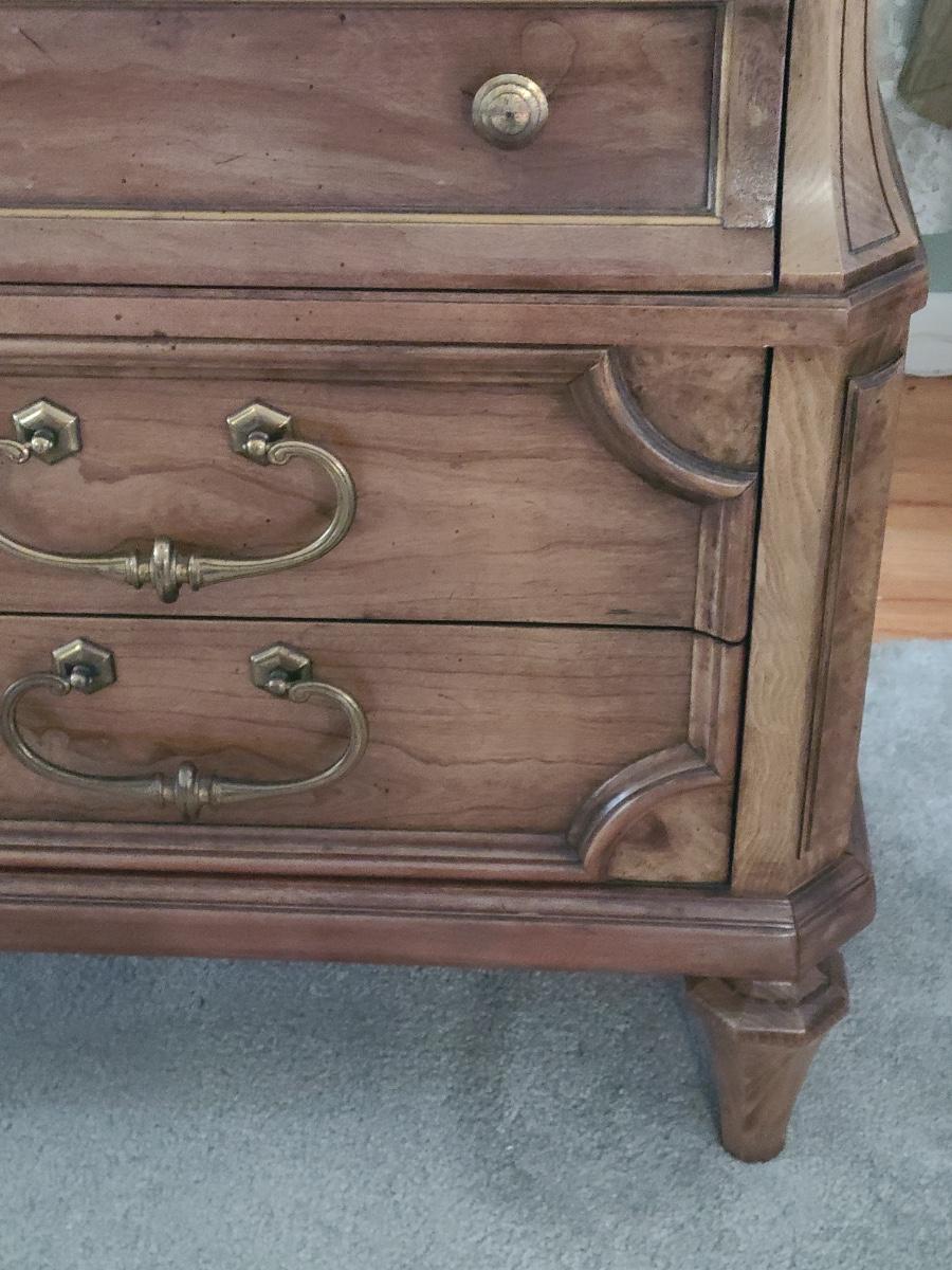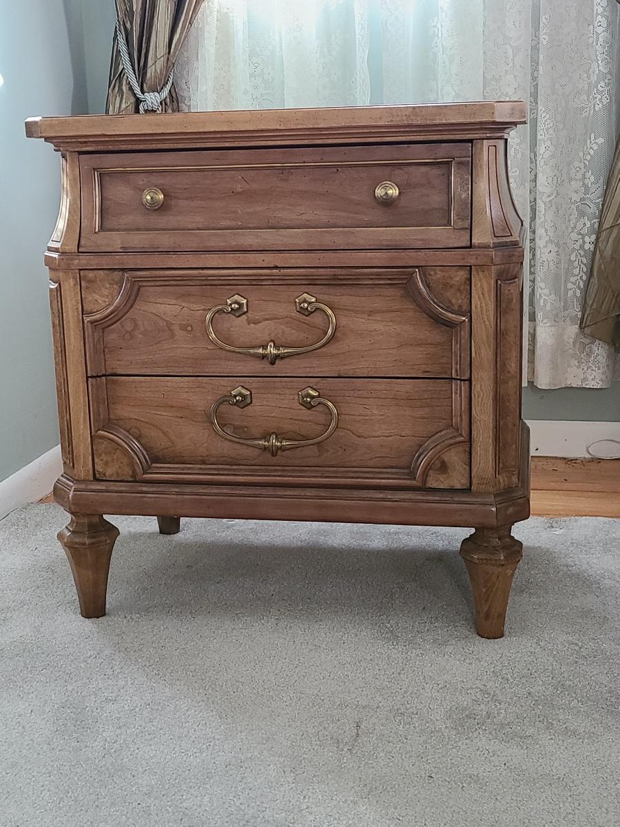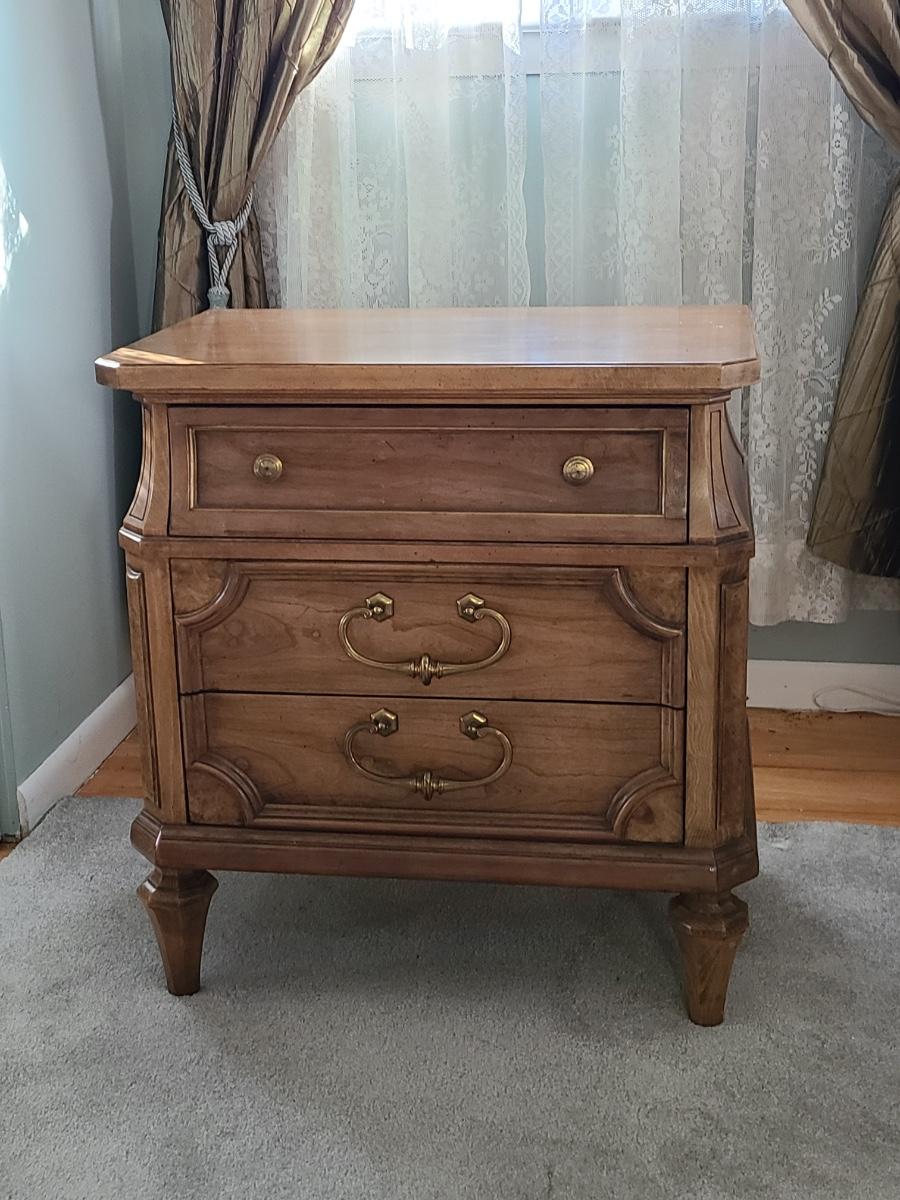 Beautiful set made of solid wood. Thomasville is known for its craftsmanship! These were displayed in a guest room and really never used. They still look new! Only one is pictured but you will get a set! Measuring 25 x 16 x 28 in height. Please see all pictures as they are the best representation of the items. The pictures show condition, measurements if taken, and what is included in the lot. Due to the large amount that we photograph and the time frame, we are not always able to take measurements. All items unless noted, are pre-owned and have been used. If you purchased furniture, you must bring help. We do not allow one person to carry large furniture out on their own. Bring help, tools and a truck for the safety of our client’s homes, and your personal safety. Company policy. Thank you.
