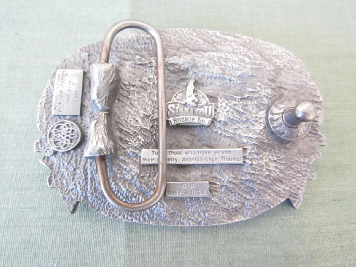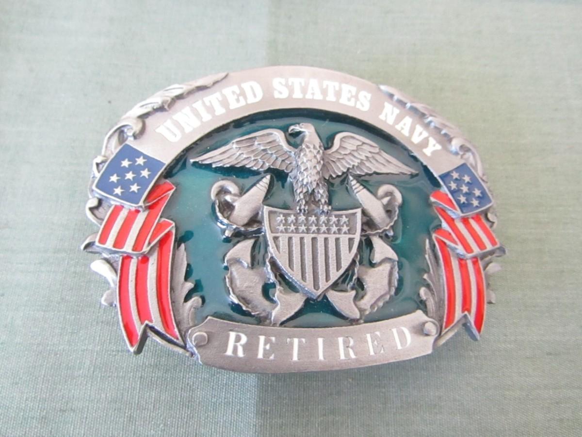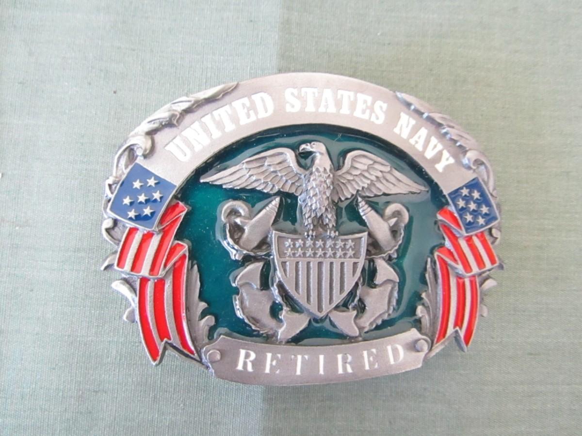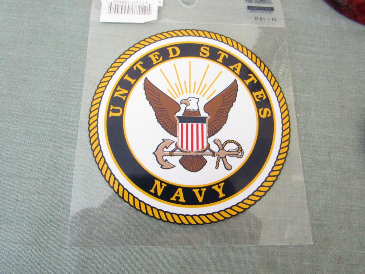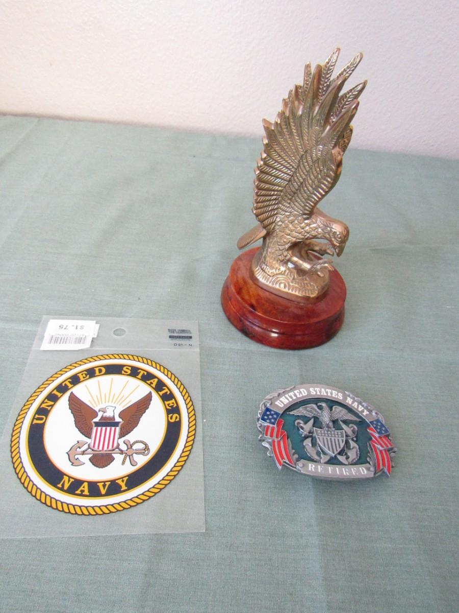 LOT 284 US NAVY STICKER, BELT BUCKLE AND A BRASS EAGLE