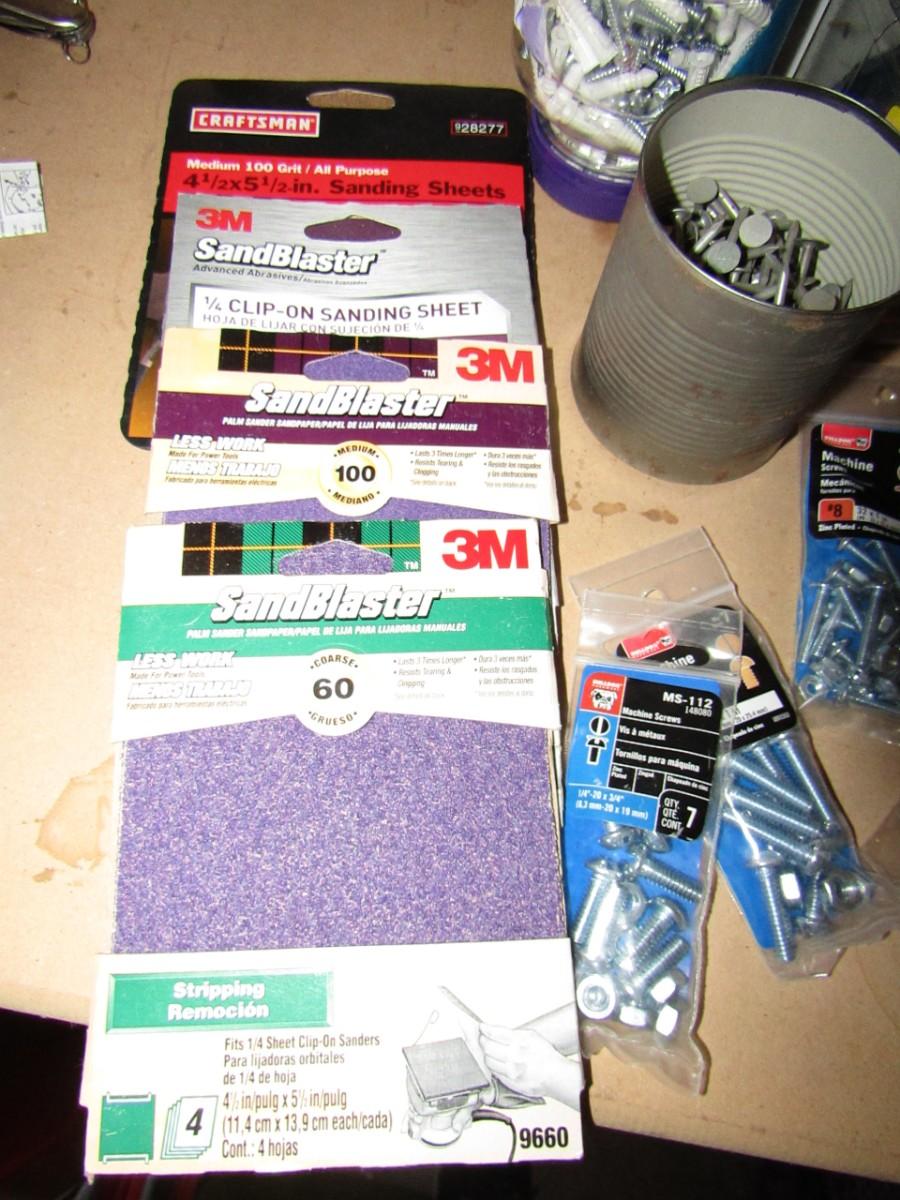 LOT 284 VARIETY OF HARDWARE AND SANDPAPER