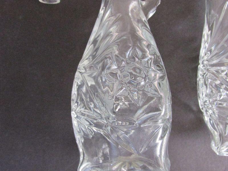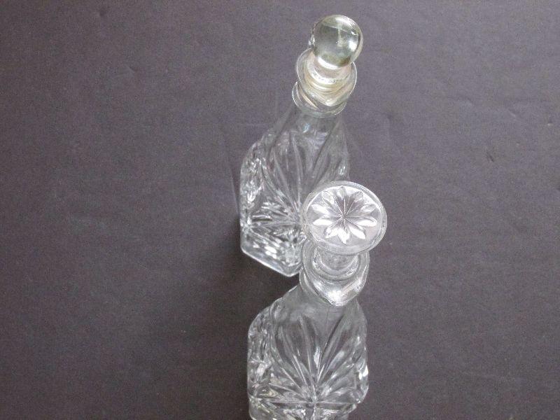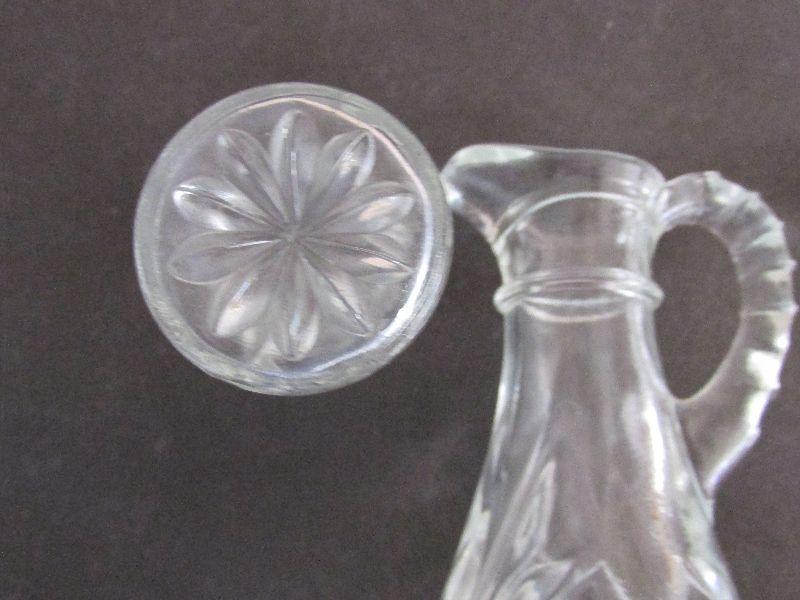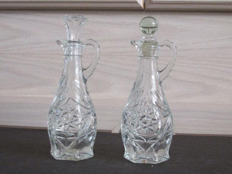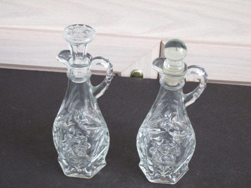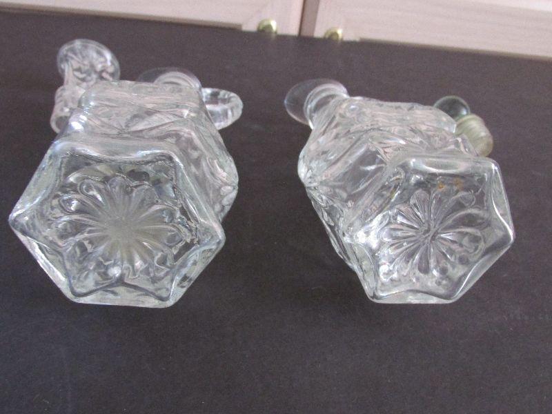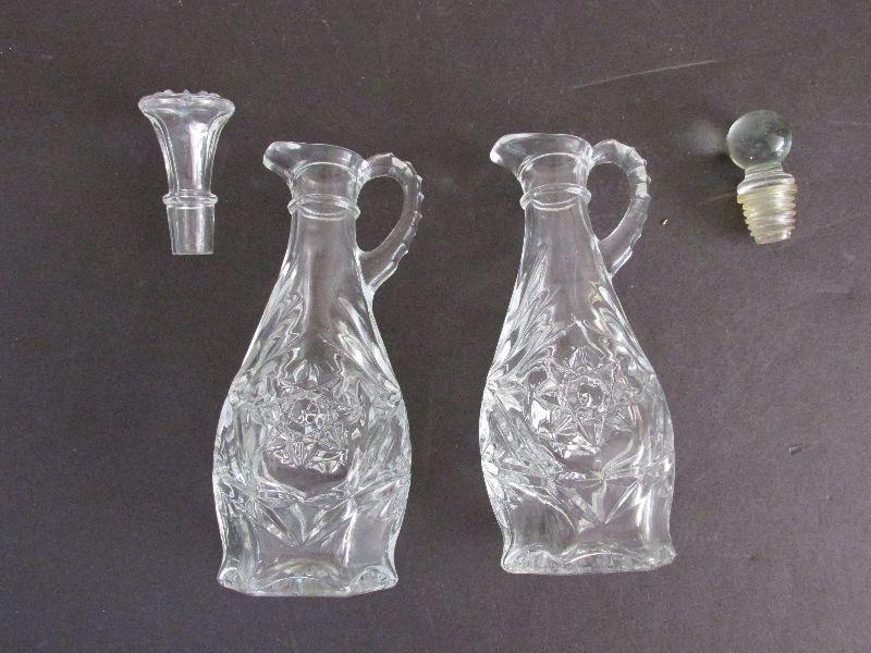 Set of two Anchor Hocking Prescut Cruets. One without original stopper. No chips or cracks.