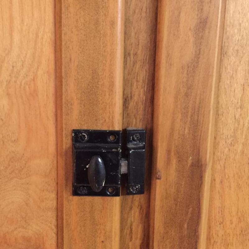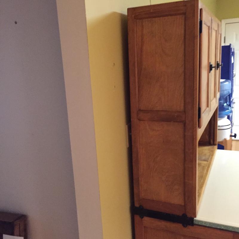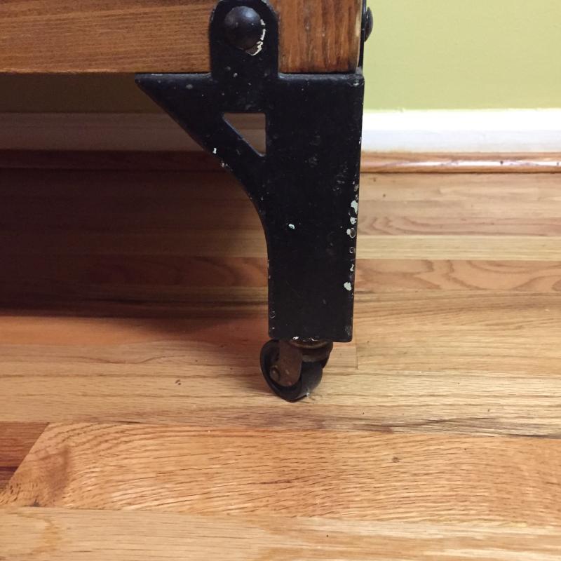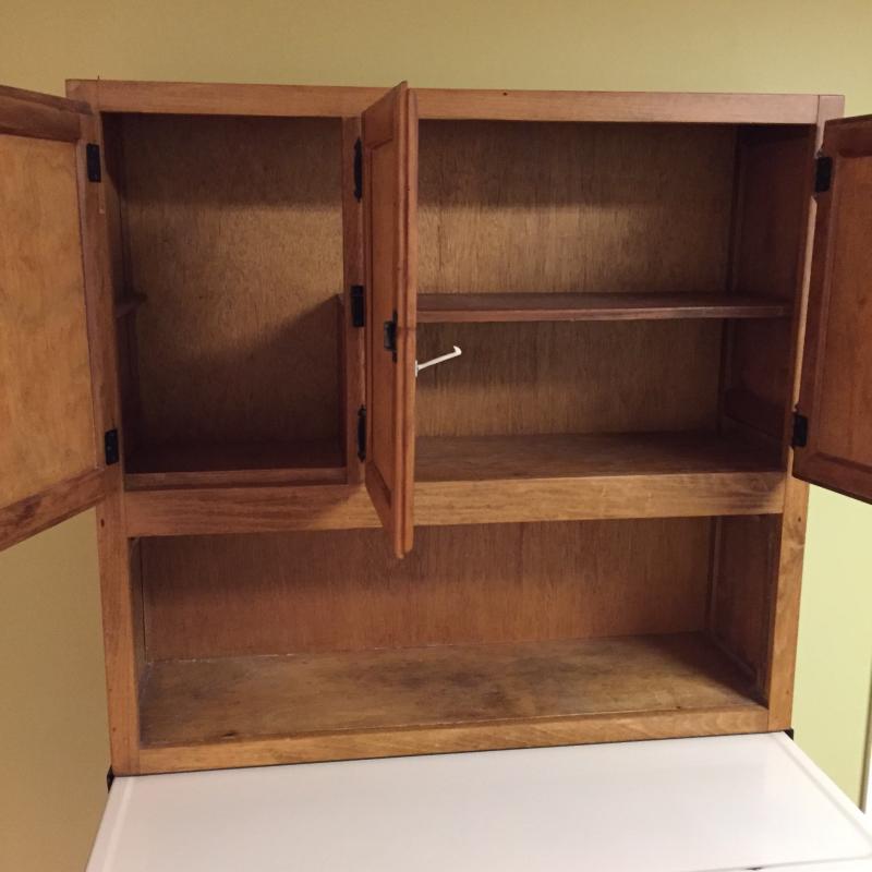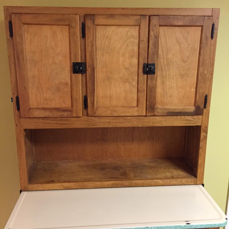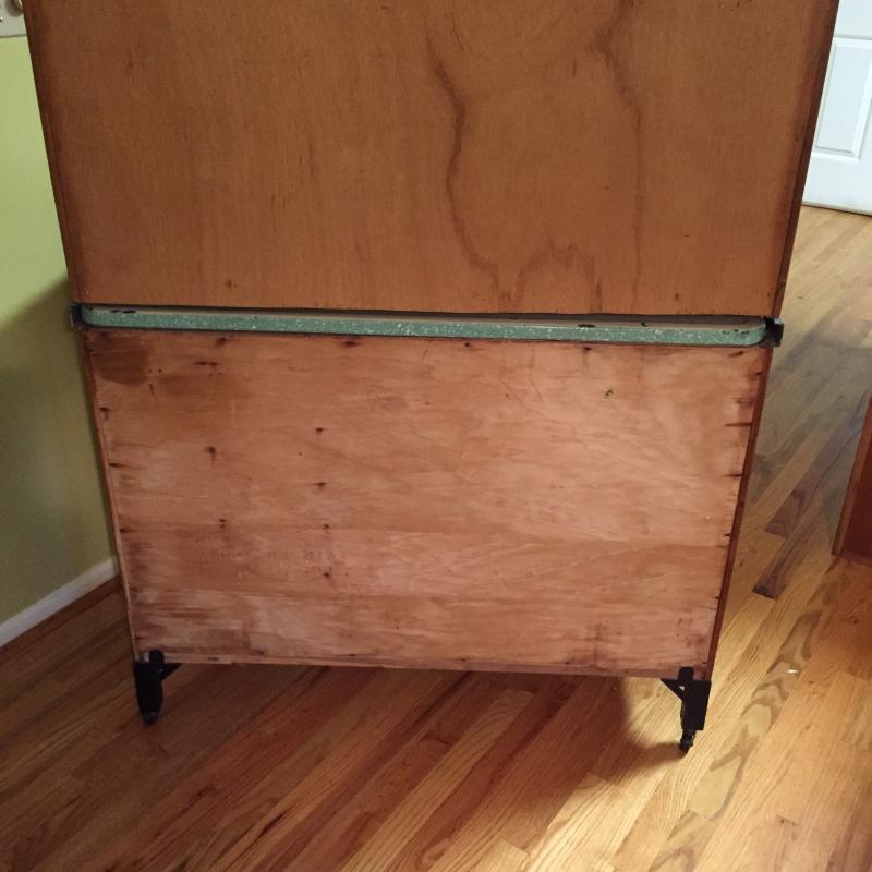 Lovely Hoosier Cabinet with Sliding Enamel Coated Pull Out Shelf. Bottom Cabinet Door will not Stay Latched. Cabinet is on casters. Cabinet Measures 70” Tall and 35.5” Deep. With Shelf Fully Extended Cabinet Measures 40” Wide. Local Pickup Only