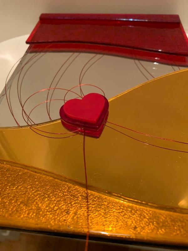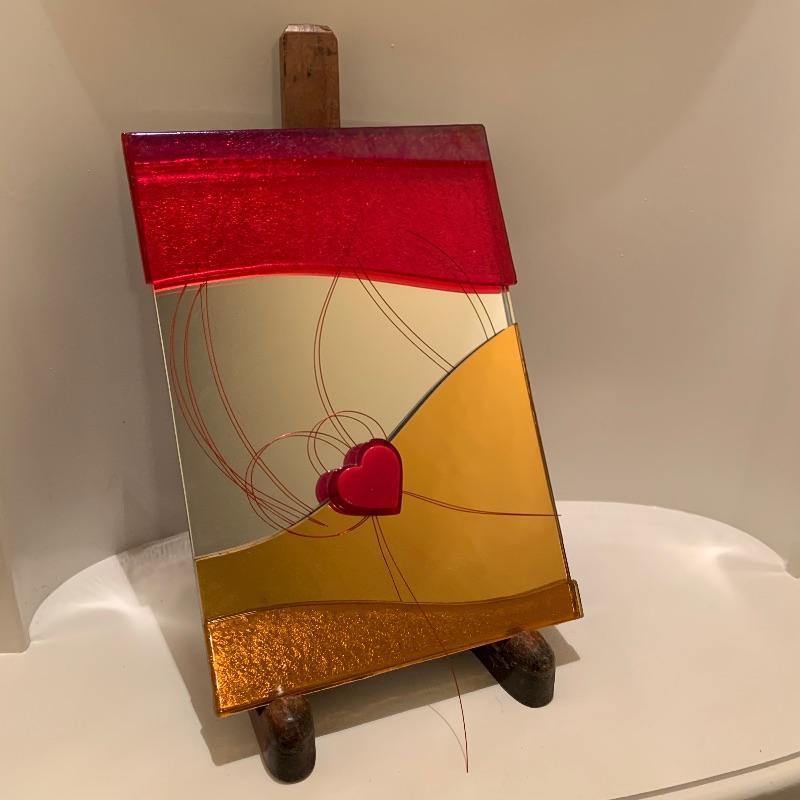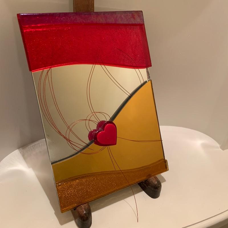 Glass Art by Alicia Keleman of K4 Glass Art from the “Heart Mirror Red” series. Piece is unique and well made modern art measuring 5.5” x8”.