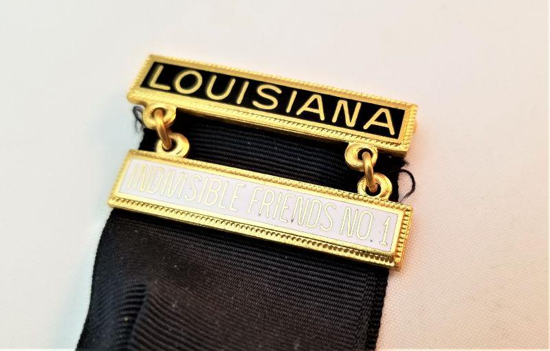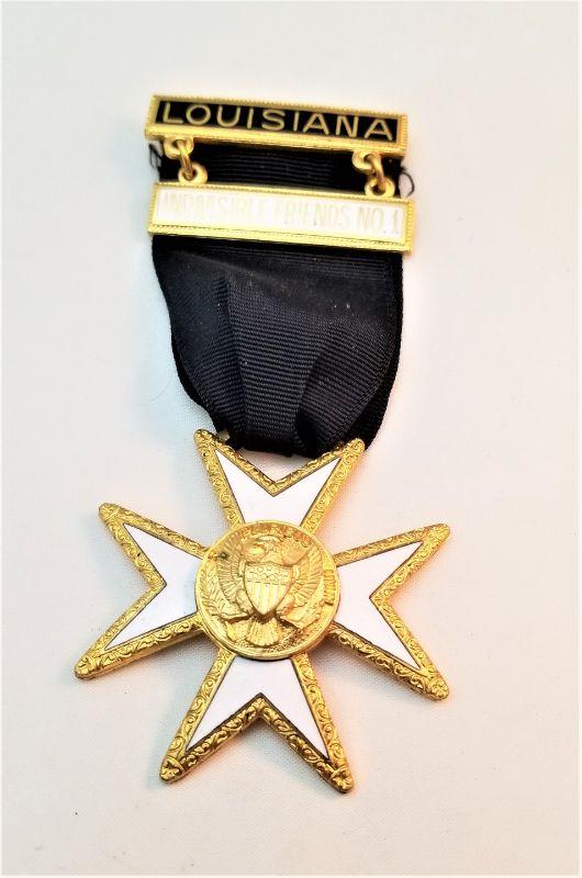 Masonic membership medal - Indivisible Friends Lodge No. 1 (Louisiana). Enamel on gold tone (black ribbon). Measures 4 inches long.