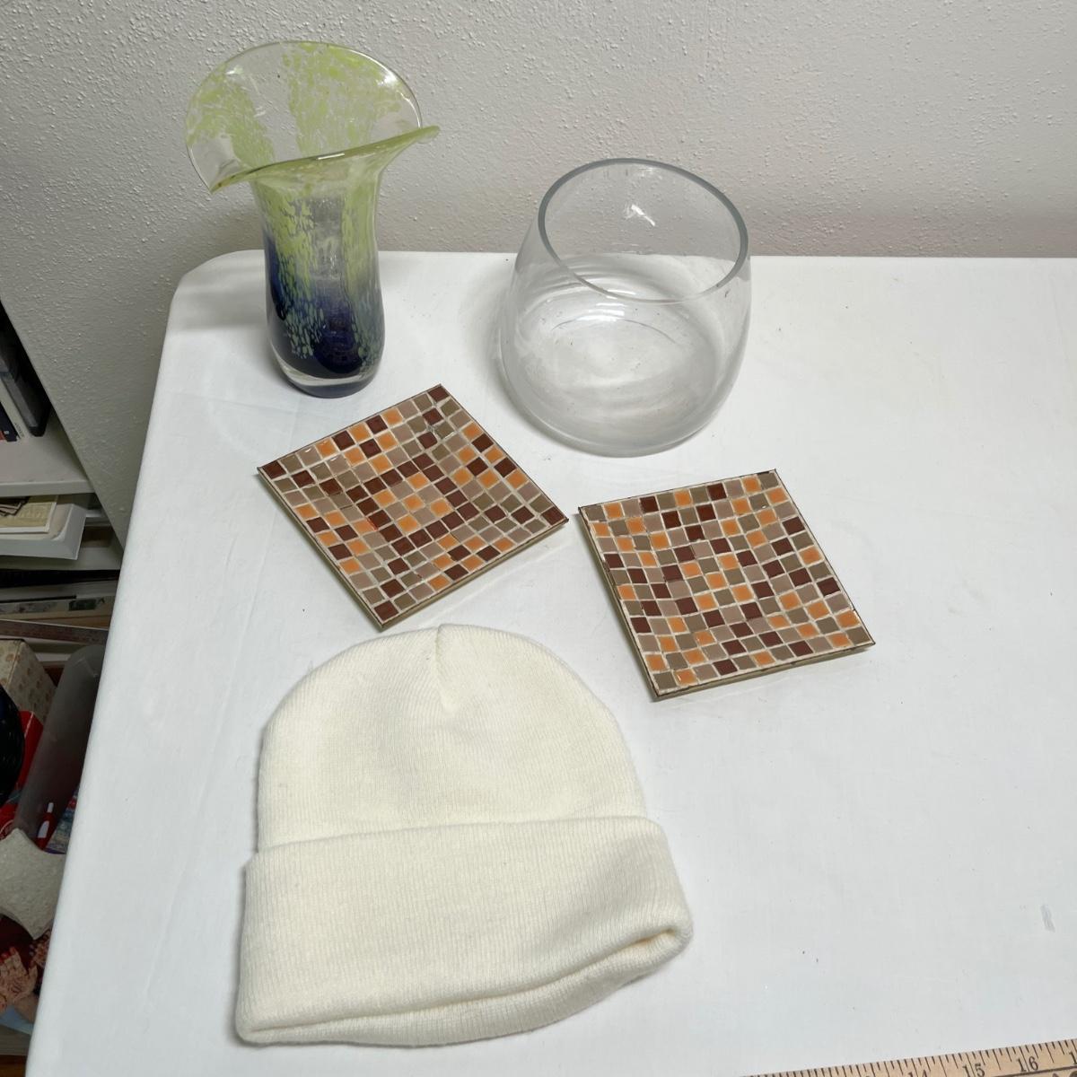 8. Sizes are approximate, you can estimate as our lot number signs are 3.5" long. Also we use an 18" & 36" measuring stick.  We try on certain things to do actual measurements. No guarantees on actual sizes, we try our best!