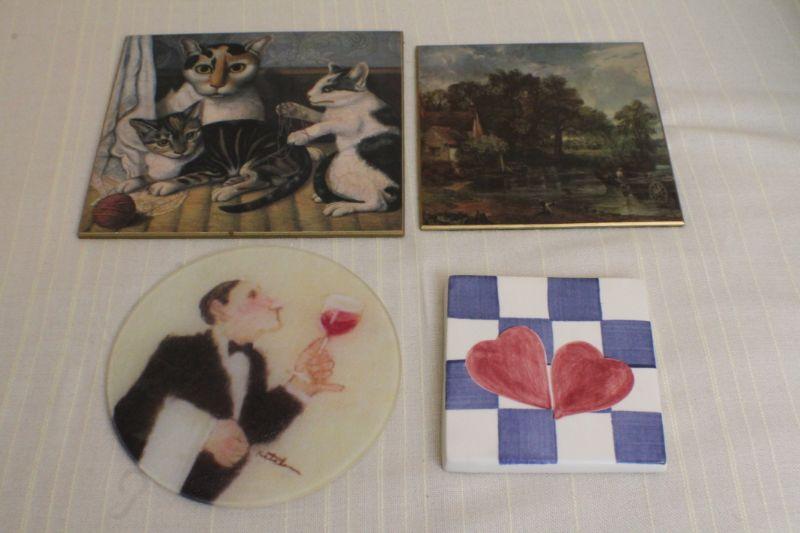 LOT #285: (4) Assorted Hot Plates (Cats, Butler, Red Hearts, Landscape Scene)