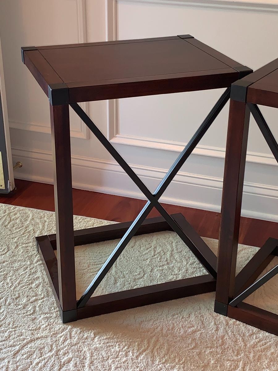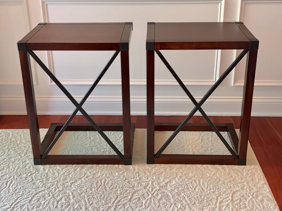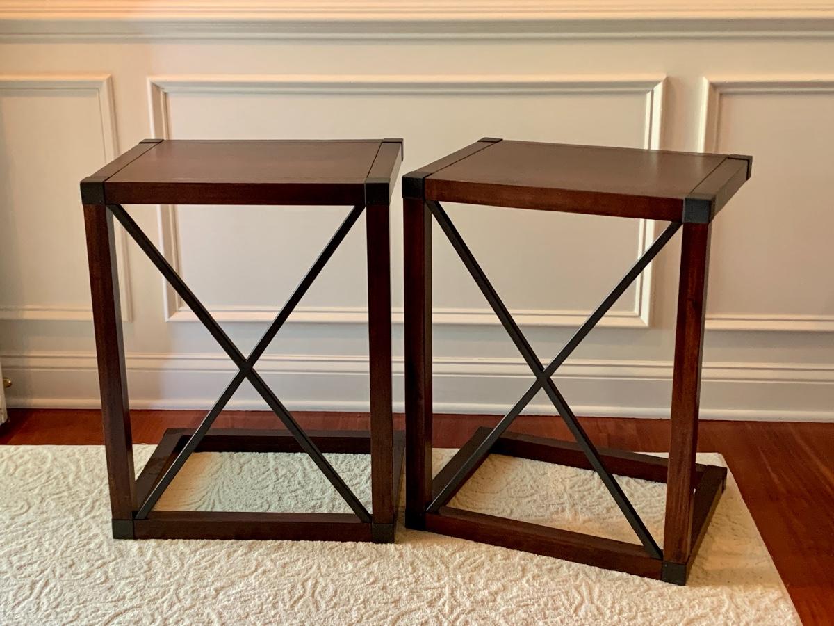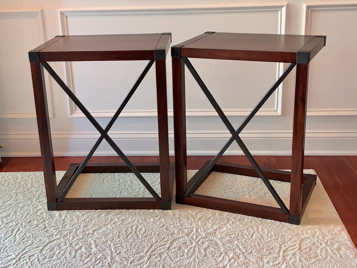Pair of beautiful metal & wood Pier 1 accent tables .(20 x 16 x 26). Please see all pictures as they are the best representation of the items. The pictures show condition, measurements if taken, and what is included in the lot. Due to the large amount that we photograph and the time frame, we are not always able to take measurements. All items unless noted, are pre-owned and have been used. If you purchased furniture, you must bring help. We do not allow one person to carry large furniture out on their own. Bring help, tools and a truck for the safety of our client’s homes, and your personal safety. Company policy. Thank you.