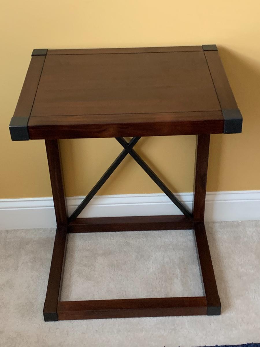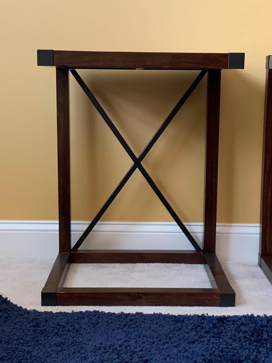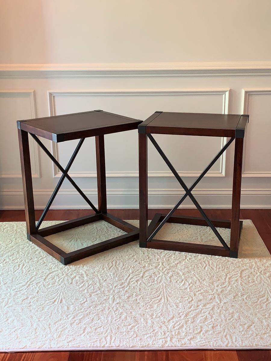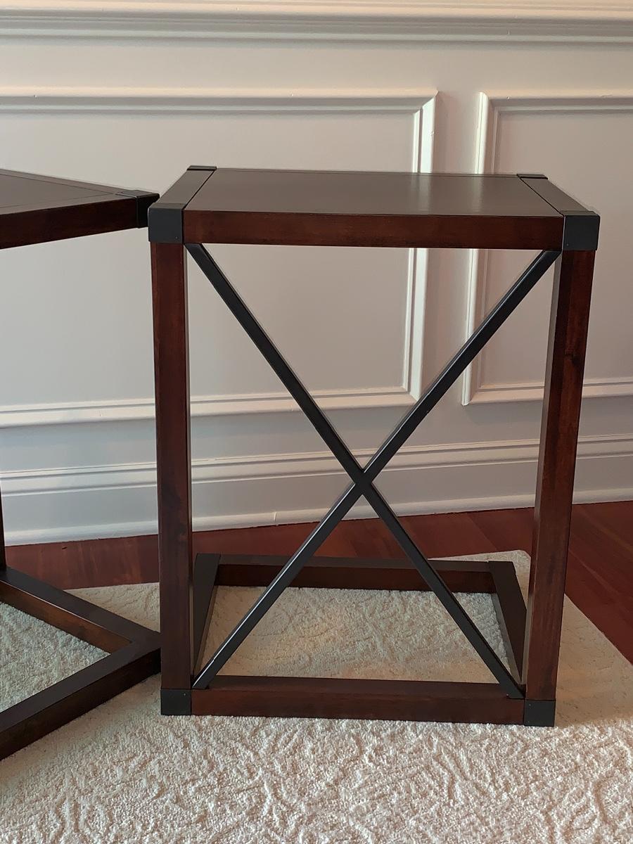 Pair of beautiful metal & wood Pier 1 accent tables .(20 x 16 x 26). Please see all pictures as they are the best representation of the items. The pictures show condition, measurements if taken, and what is included in the lot. Due to the large amount that we photograph and the time frame, we are not always able to take measurements. All items unless noted, are pre-owned and have been used. If you purchased furniture, you must bring help. We do not allow one person to carry large furniture out on their own. Bring help, tools and a truck for the safety of our client’s homes, and your personal safety. Company policy. Thank you.
