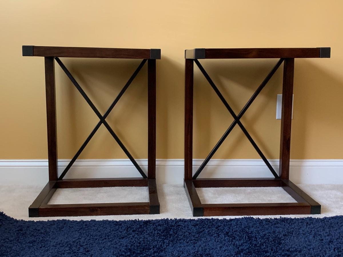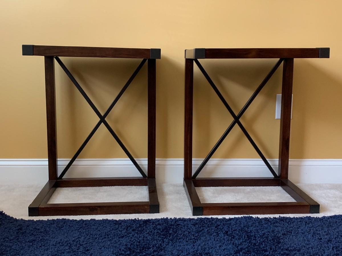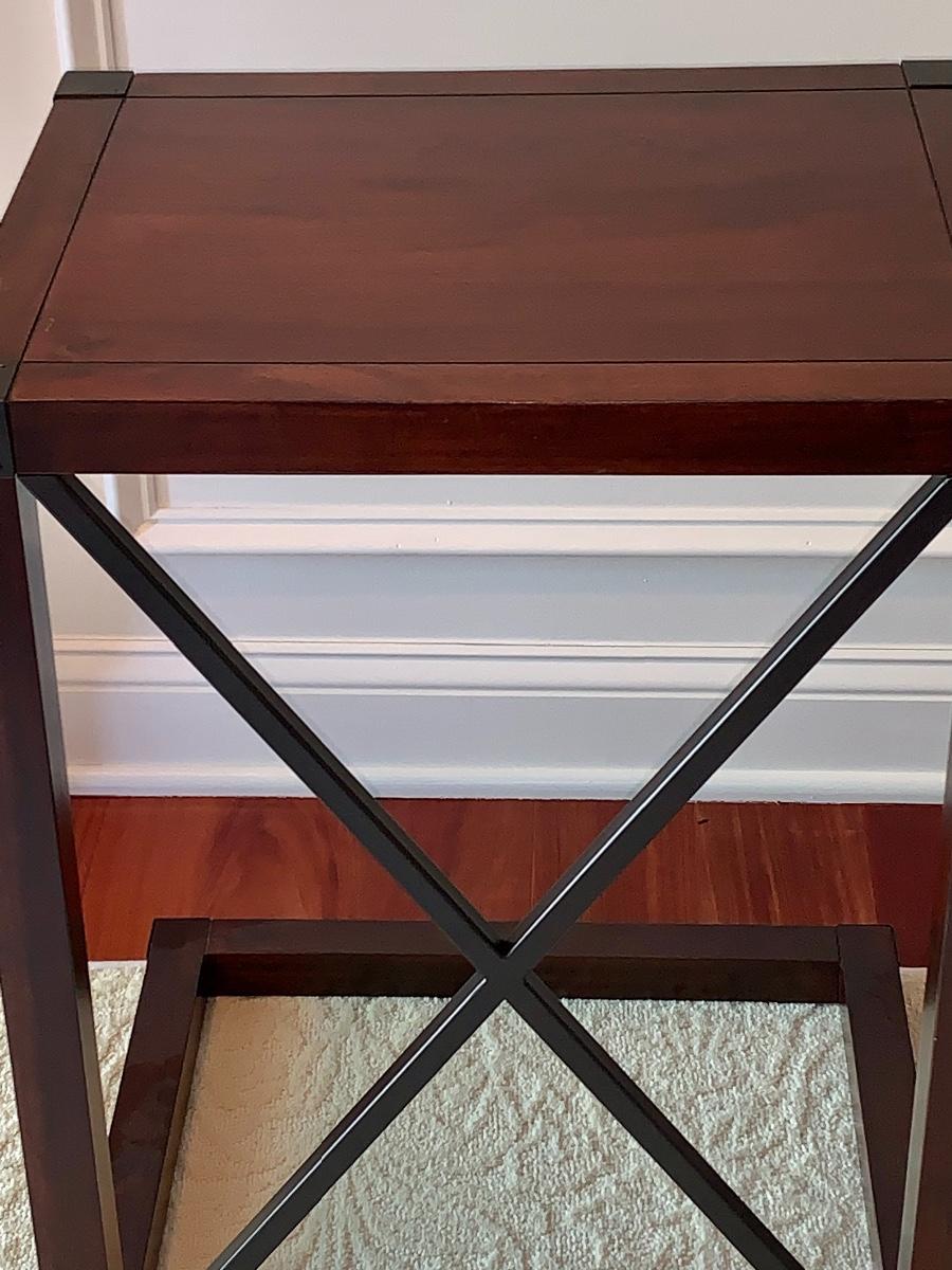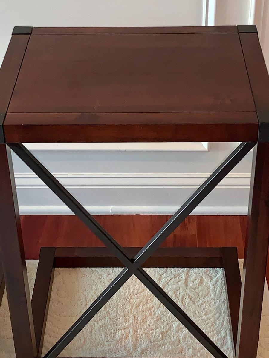 Pair of beautiful metal & wood Pier 1 accent tables .(20 x 16 x 26). Please see all pictures as they are the best representation of the items. The pictures show condition, measurements if taken, and what is included in the lot. Due to the large amount that we photograph and the time frame, we are not always able to take measurements. All items unless noted, are pre-owned and have been used. If you purchased furniture, you must bring help. We do not allow one person to carry large furniture out on their own. Bring help, tools and a truck for the safety of our client’s homes, and your personal safety. Company policy. Thank you.
