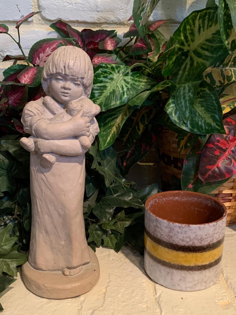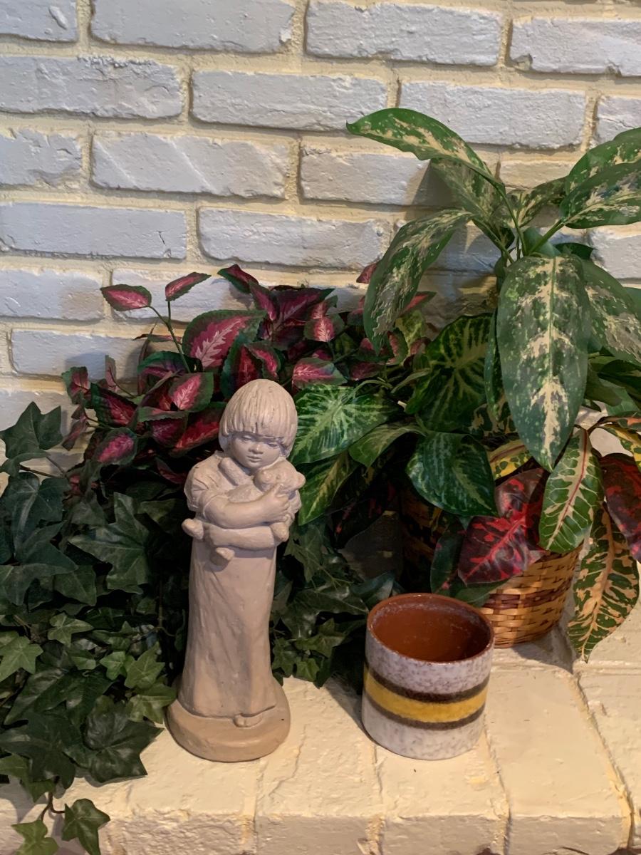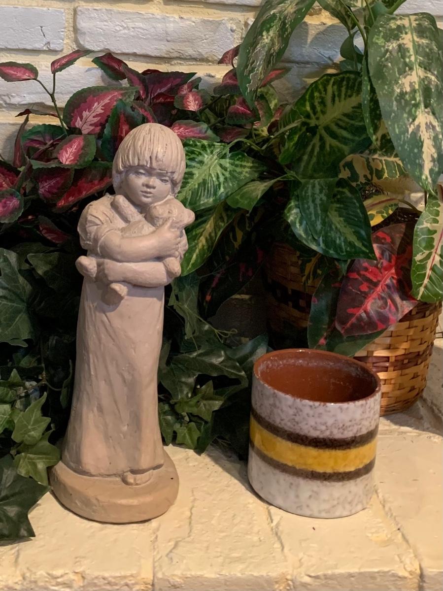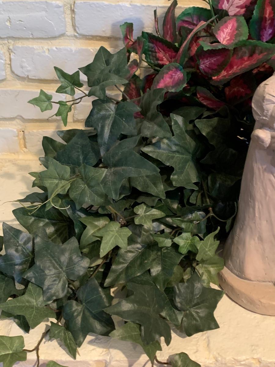 Faux ivy and beautiful home decor planter and Austin Sculpture