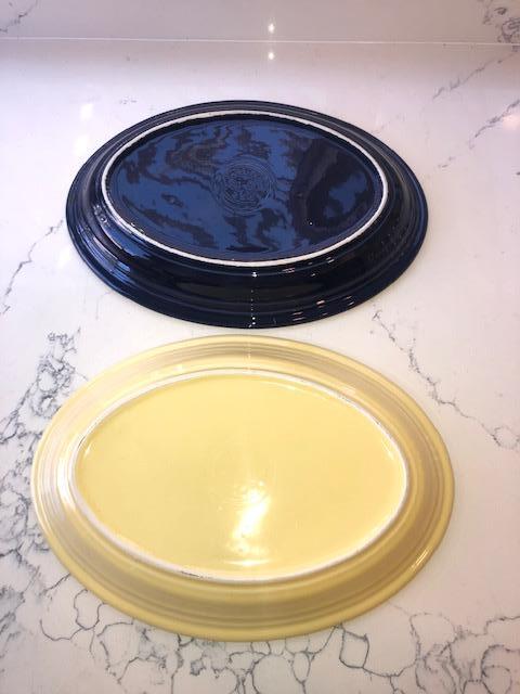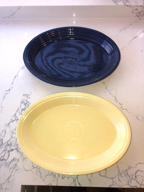LOT 285 Fiesta Ware 2 Oval Platter Yellow & Cobalt Blue