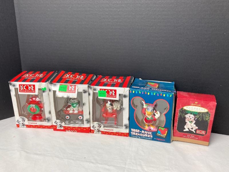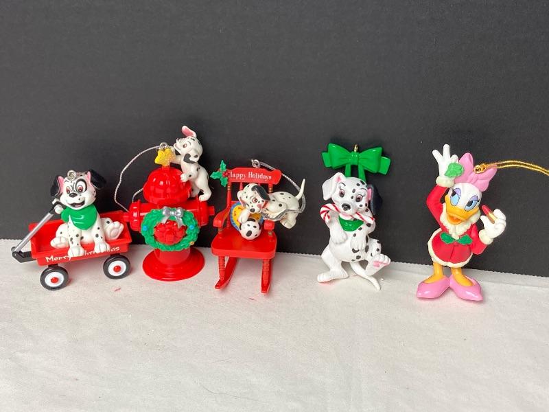 Hallmark Keepsake 101 Dalmatians “Two Tone” ornament. Three 101 Dalmatians ornaments by Enesco and “Daisy Duck” ornament by Mickey Unlimited