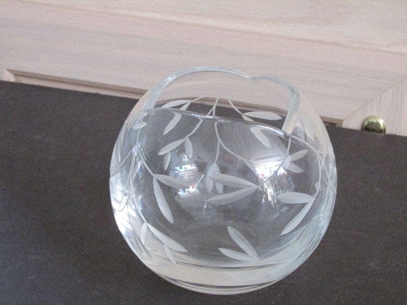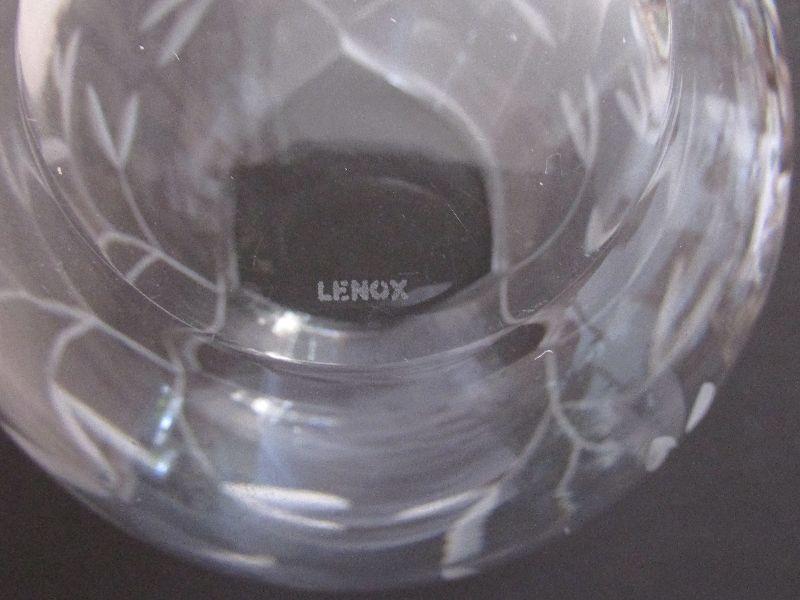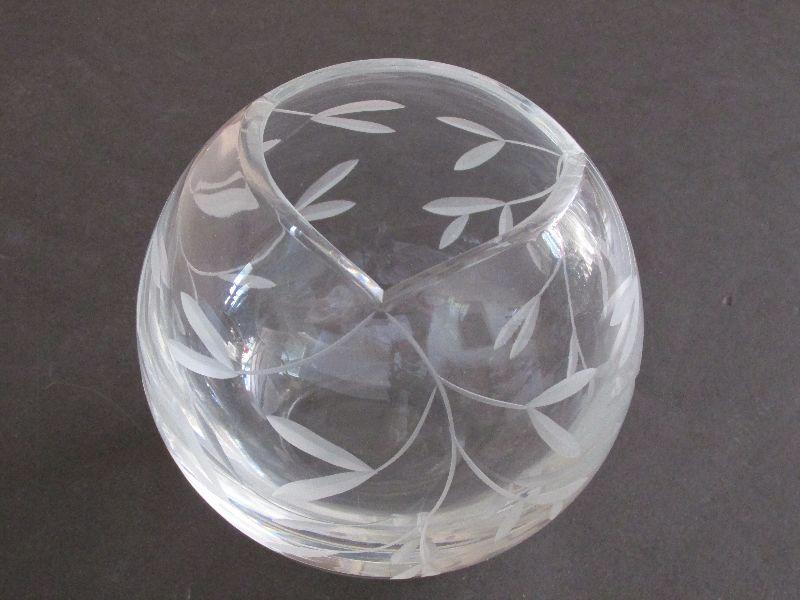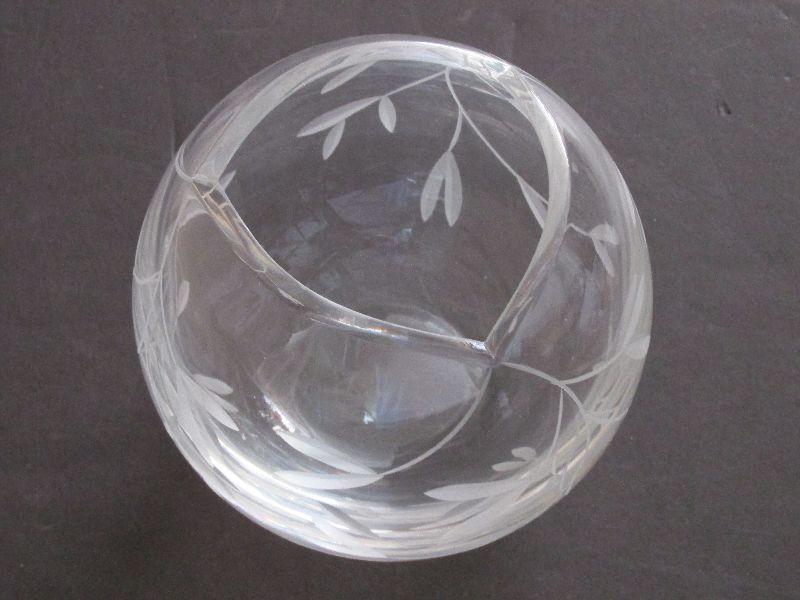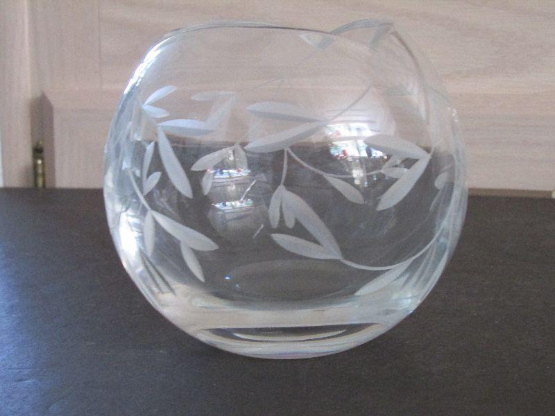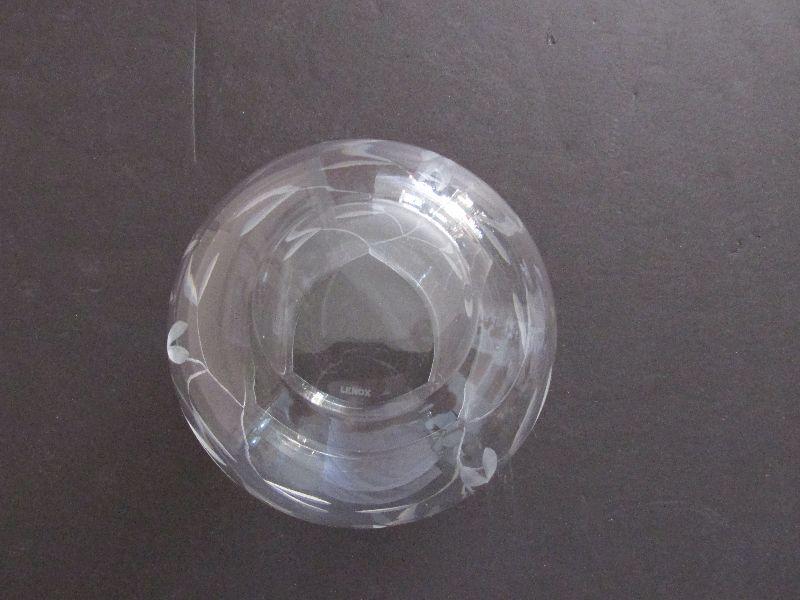 Lenox Etched glass circular vase/rose bowl. Opal Innoncence by Lenox. Height: 6.75" Width: 5.5". No chips or cracks.